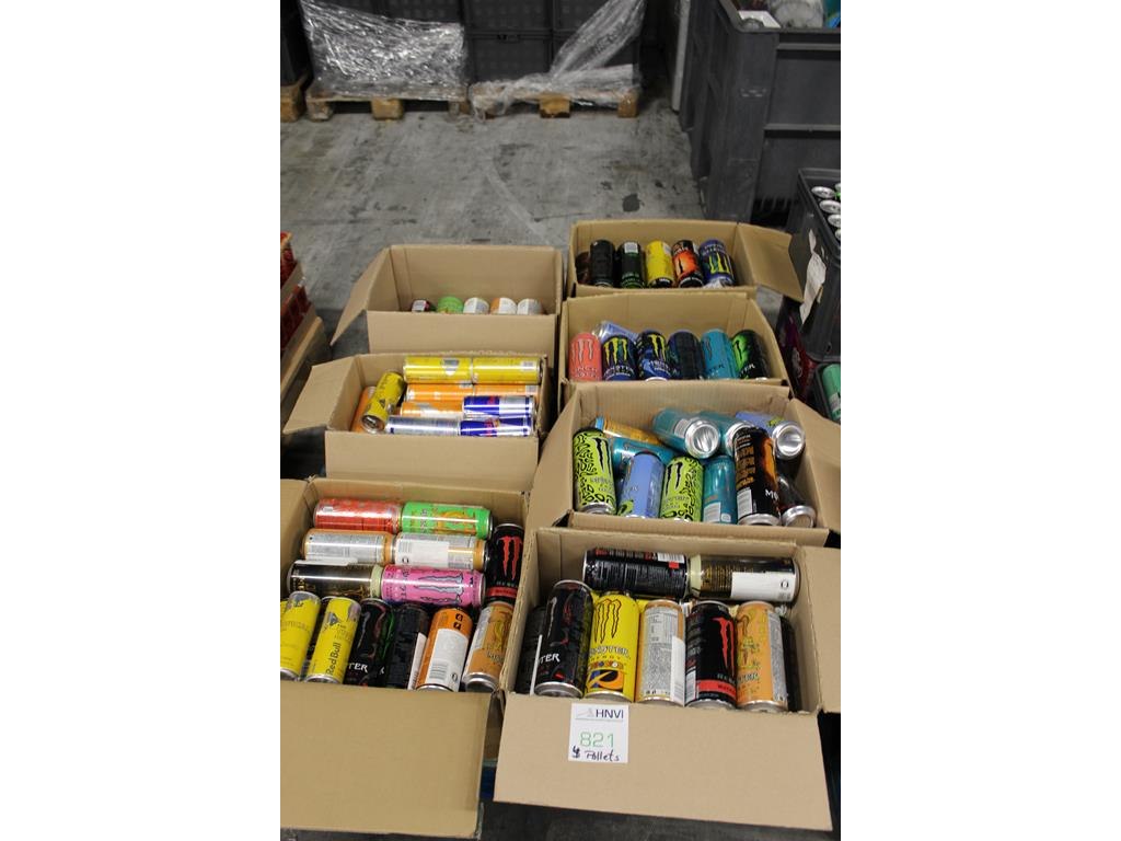 Energy dranken en frisdranken w.o. MONSTER, Coca Cola, RED BULL, PEPSI, Sweppes, MAAZA, en Dr Pepper op 4 pallets. Diverse THT w.o. voornamelijk verlopen. Ruim 1500 blikken. Bod is inclusief ruim 200 euro statiegeldwaarde