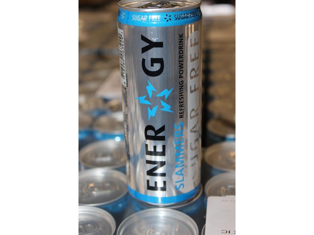 Energy slammers powerdrink sugar free. 105 trays a 24 blikken 0,25l. 2520 blikken. tht 28-2-26. bod is incl...