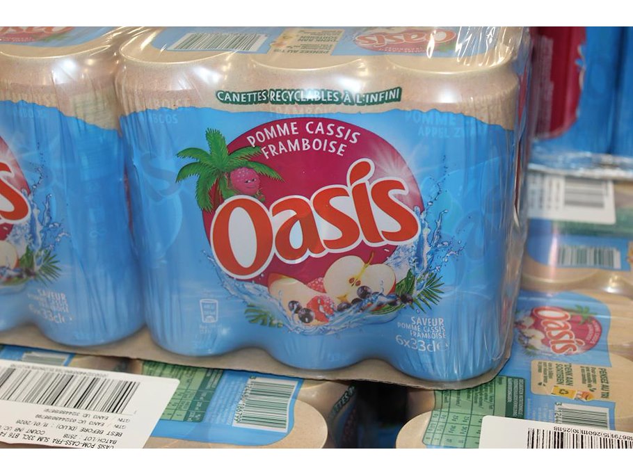 Fruitdrank OASIS Cassis. 64 trays a 24 stuks 33 cl. Totaal 1536 blikken. THT 1-26. Bod is inclusief 230,40 euro statiegeldwaarde