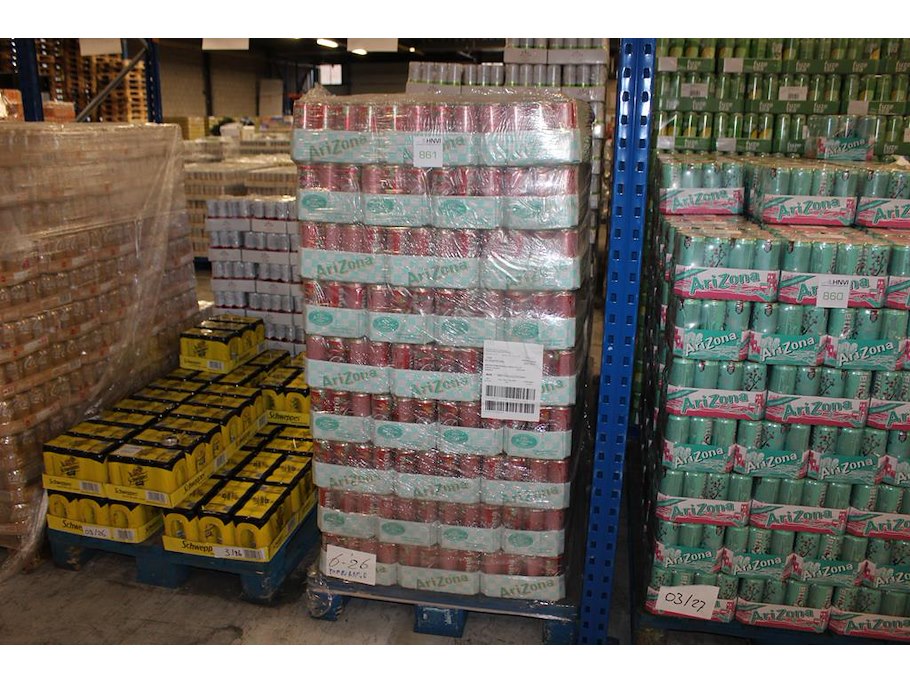 Fruitdrank arizona pommegranate. 180 trays a 12 stuks 33 cl. totaal 2160 blikken. tht 7-26. bod is inclusie...