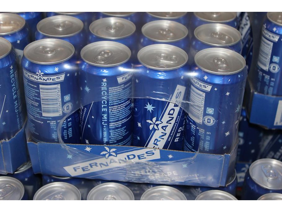 Frisdrank FERNANDES Red Grape. 504 blikken. THT 8-26. Bod is inclusief 75,6 euro statiegeldwaarde