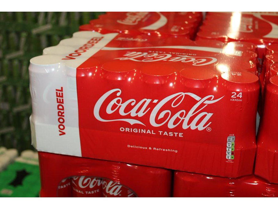Coca cola original. 98 trays a 24 blikken 0,33l. totaal 2352 blikken. tht 8-26. bod is inclusief 352,80 eur...