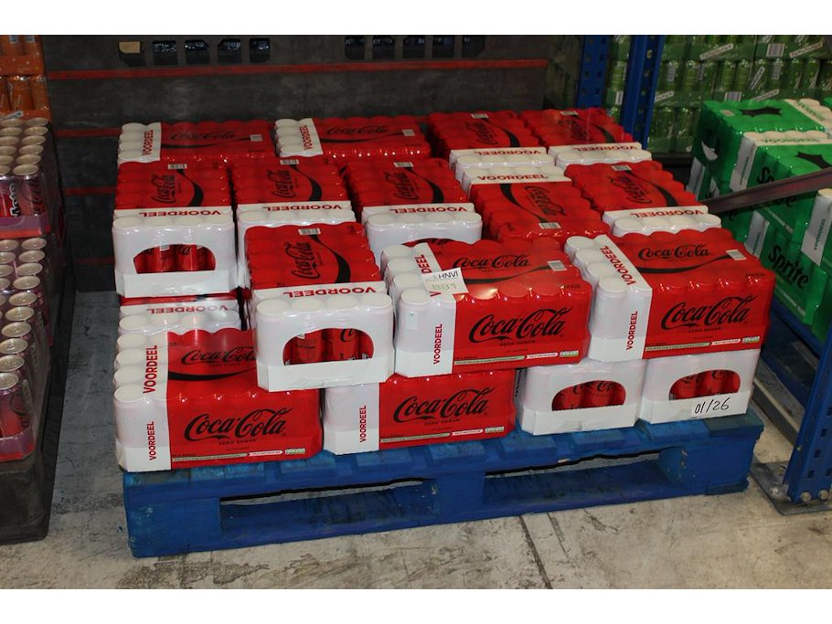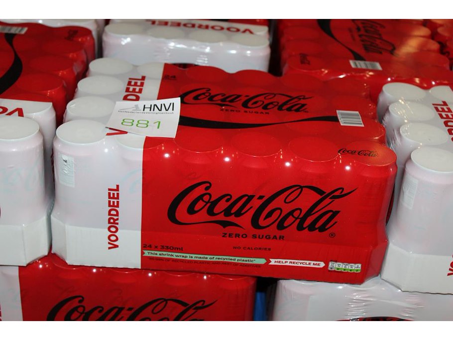 COCA COLA Zero. 25 trays a 24 blikken 0,33l. Totaal 600 blikken. THT 1-26. Bod is inclusief 90 euro statiegeldwaarde