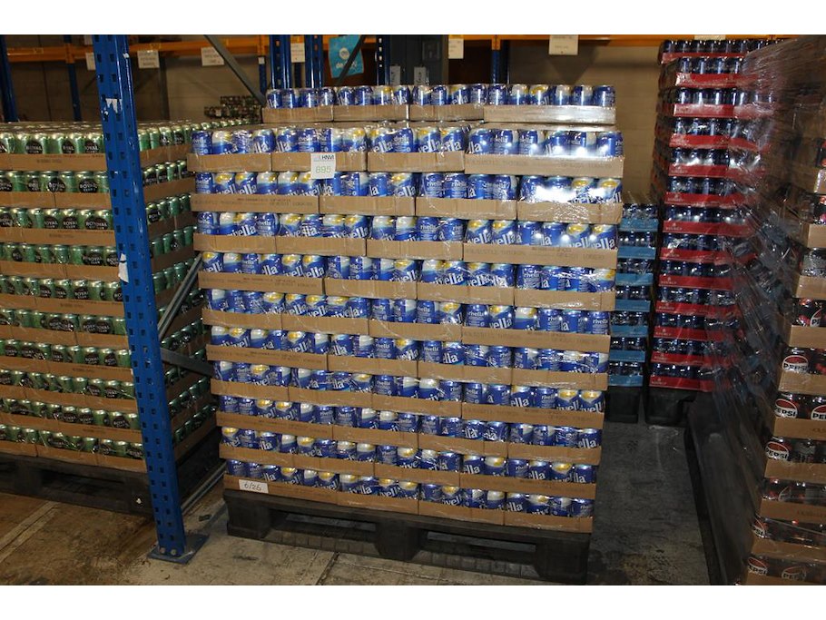 RIVELLA. 105 trays a 24 blikken 0,33l. Totaal 2520 blikken. THT 6-26. Bod is inclusief 378 euro statiegeldwaarde