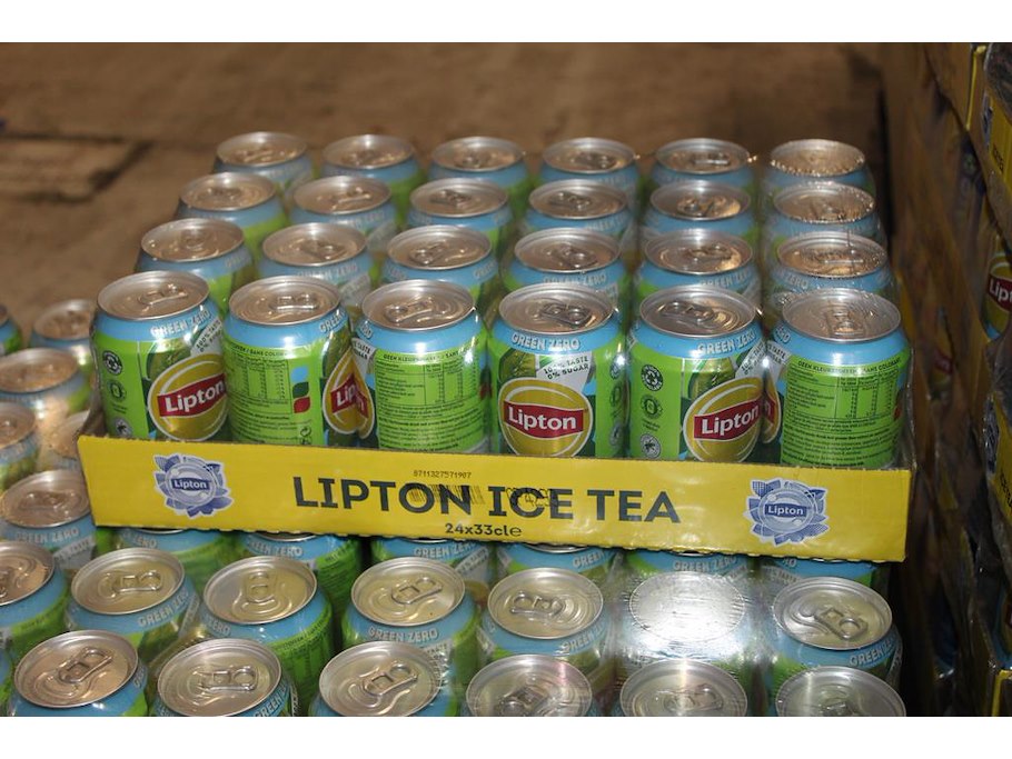 LIPTON ICE-TEA Green Zero. 21 trays a 24 blikken 0,33l. Totaal 504 blikken. THT 6-2026. Bod is inclusief 75,6 euro statiegeldwaarde