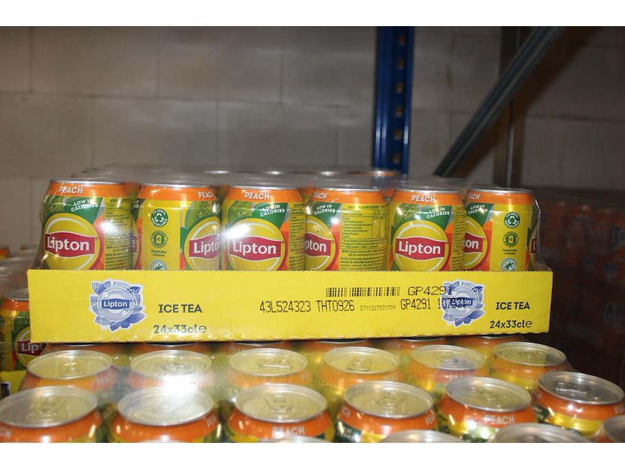 LIPTON ICE-TEA Peach. 102 trays a 24 blikken 0,33l. Totaal 2248 blikken. THT 9-2026. Bod is inclusief 367,2 euro statiegeldwaarde