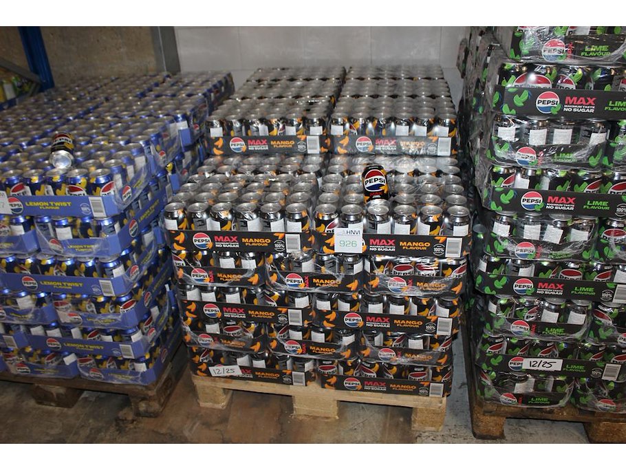 PEPSI Cola Max Mango. 51 trays a 24 blikken 0,33l. Totaal 1224 blikken. THT 12-25. Bod is inclusief 183,6 euro statiegeldwaarde