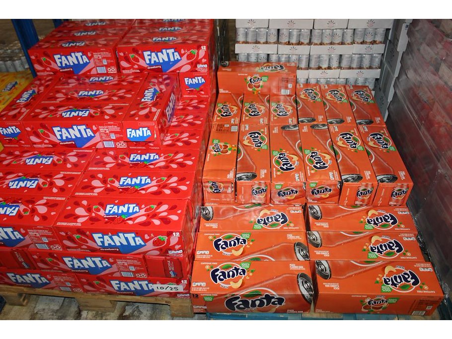 FANTA USA w.o. Peach, Strawberry, PineApple, Berry en Five Nights op 5 pallets. Totaal ruim 200 trays a 12 blikken 0,33l. Totaal 1200 blikken. THT deels verlopen.