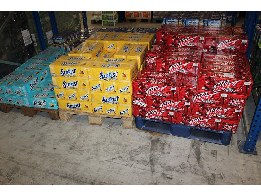 Frisdranken op 5 pallets w.o. sunkist, canada dry en mtn dew. totaal ruim 3000 blikken. tht onbekend.