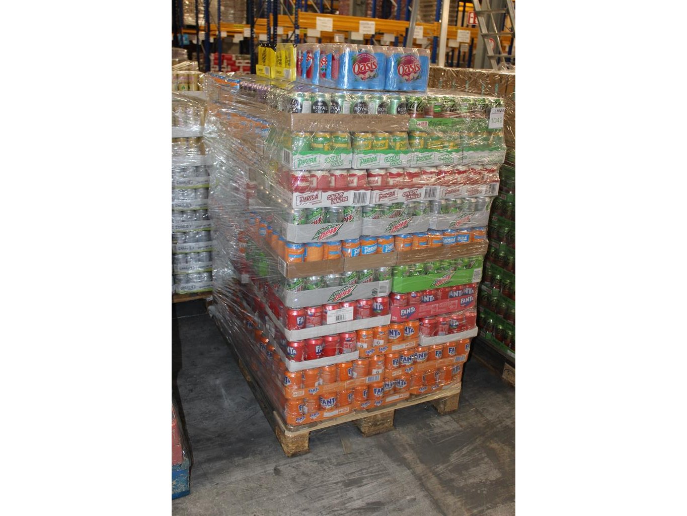 Mixed pallet frisdranken waaronder FANTA en SCHWEPPES circa 2250 blikken met THT 2025/2026. Bod is inclusief 300 euro statiegeldwaarde