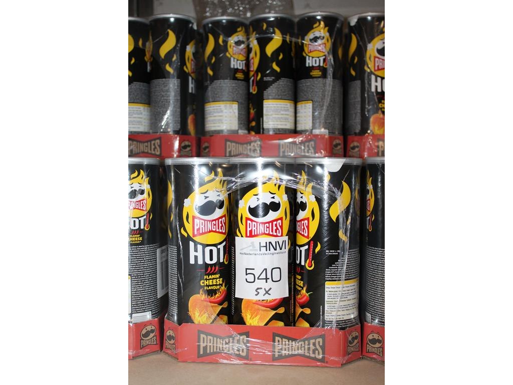 Vijf dozen pringles hot cheese. 45 bussen. tht 1-26