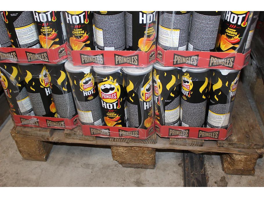 Vijftien dozen pringles hot cheese. 135 bussen. tht 1-26
