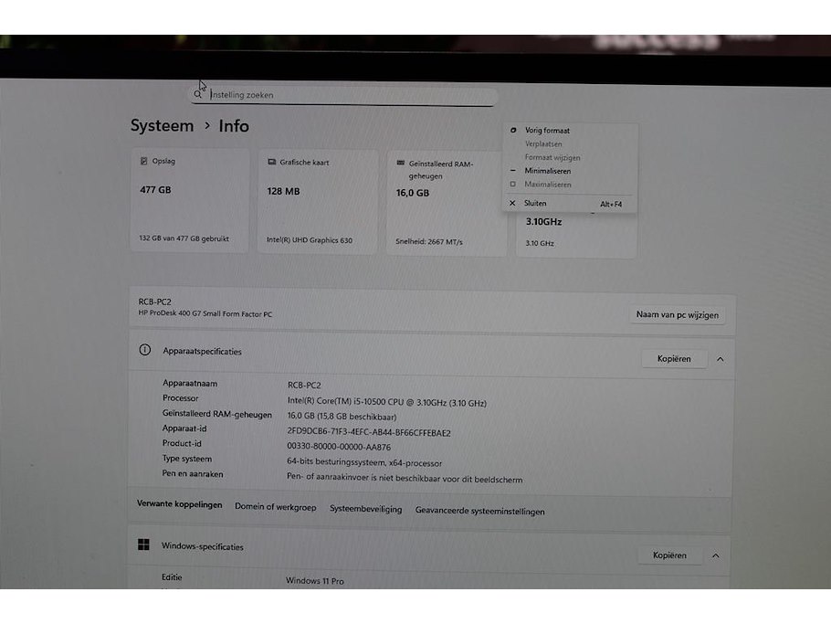 PC configuratie HP PRoDesk 400 G& Small Form Factor Pc met twee beeldschermen IIYAMA Prolite XB2483HSU, toetsenbord en muis. Werkgeheugen 16 GB. 477 GB HDD. Intel Core i5-10500 CPU 3.10 GHz. Met DVD-RW station.