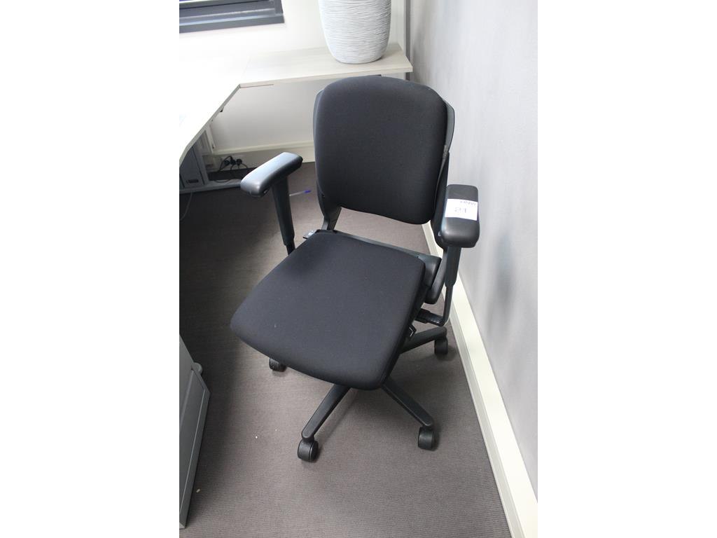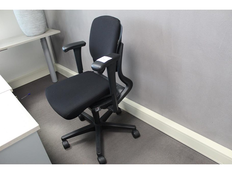 Verrijdbare bureaustoel zwart gestoffeerd. diverse ergonomische instellingen