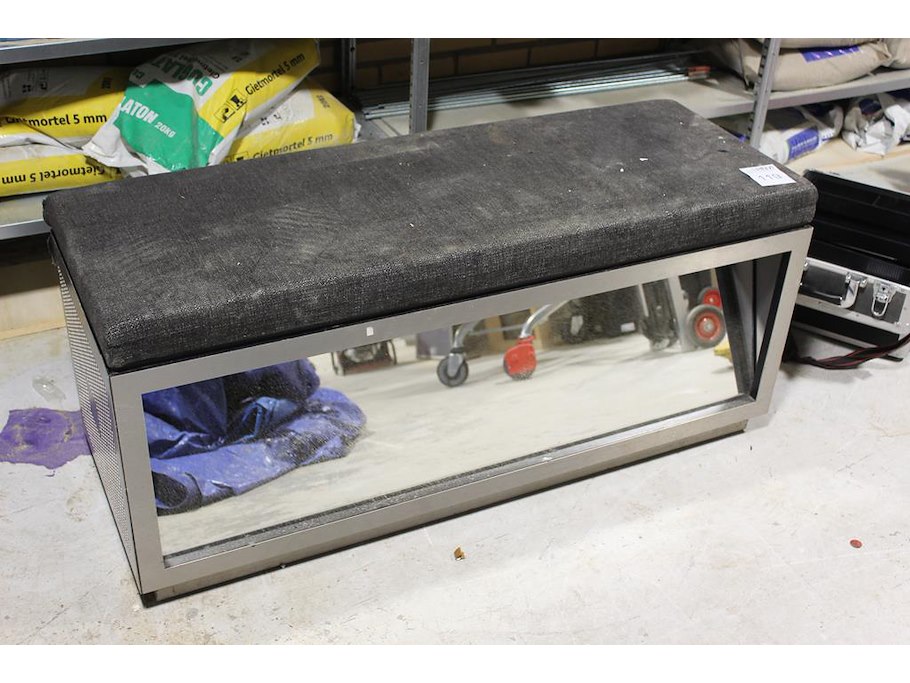 Pasbankje met spiegel . Afm. 120 x 45 x 53 cm.