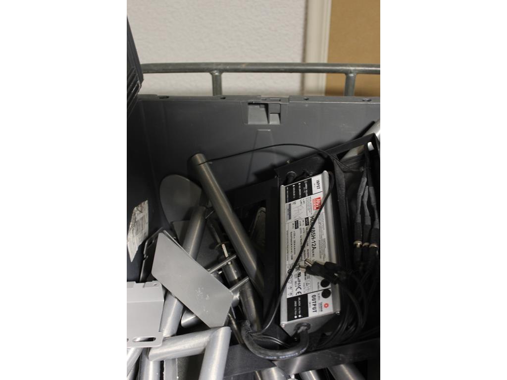 Winkel display gerelateerde producten in vijf stapelbare kratten waaronder trafo's kabels en beugels.