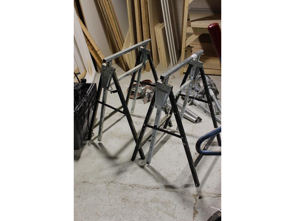 Twee metalen bokken powefix in hoogte verstelbaar.