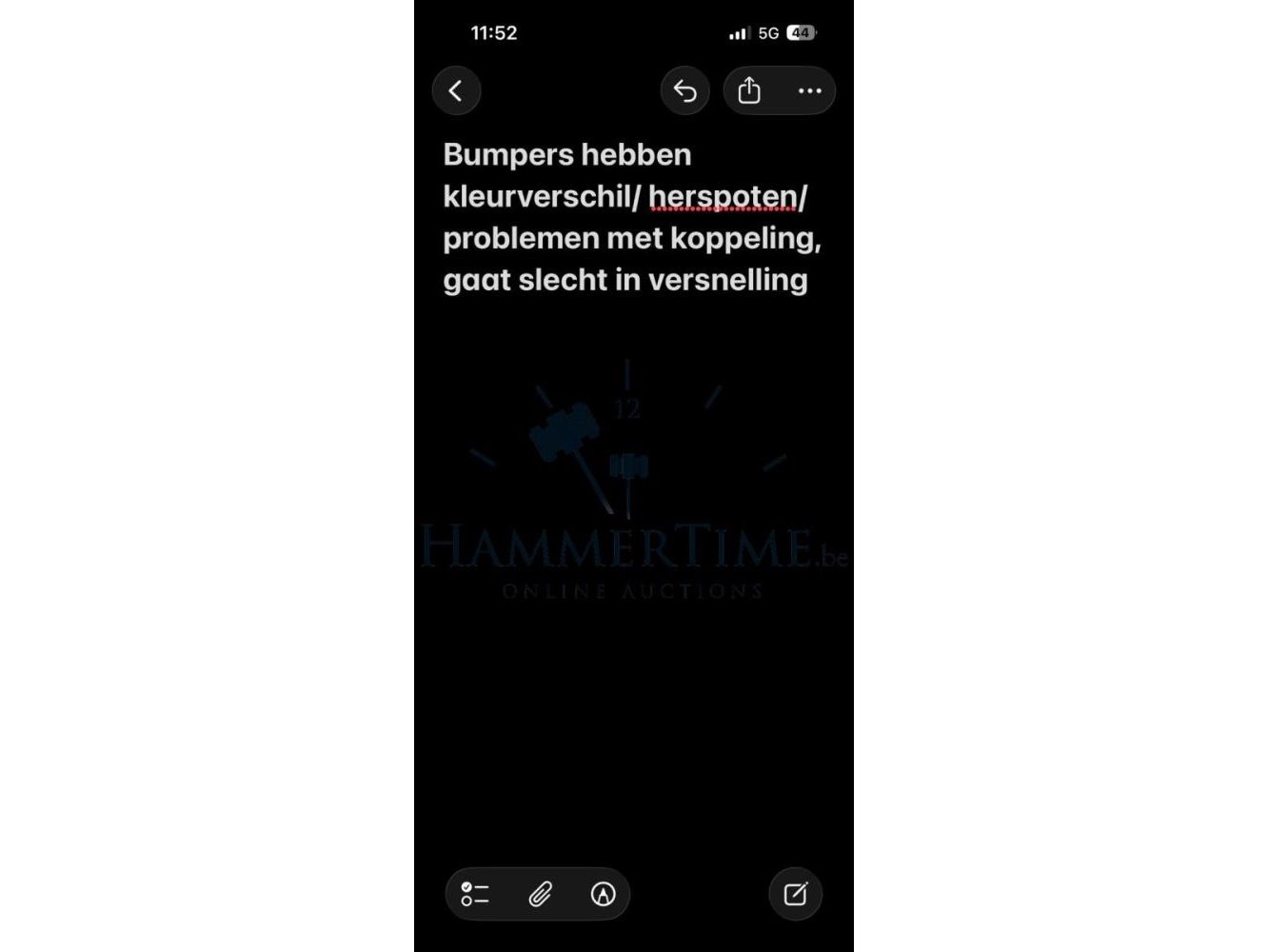 Bumpers hebben een kleurverschil/Herpsoten/ Problemen met de koppeling, gaat slecht in versnelling