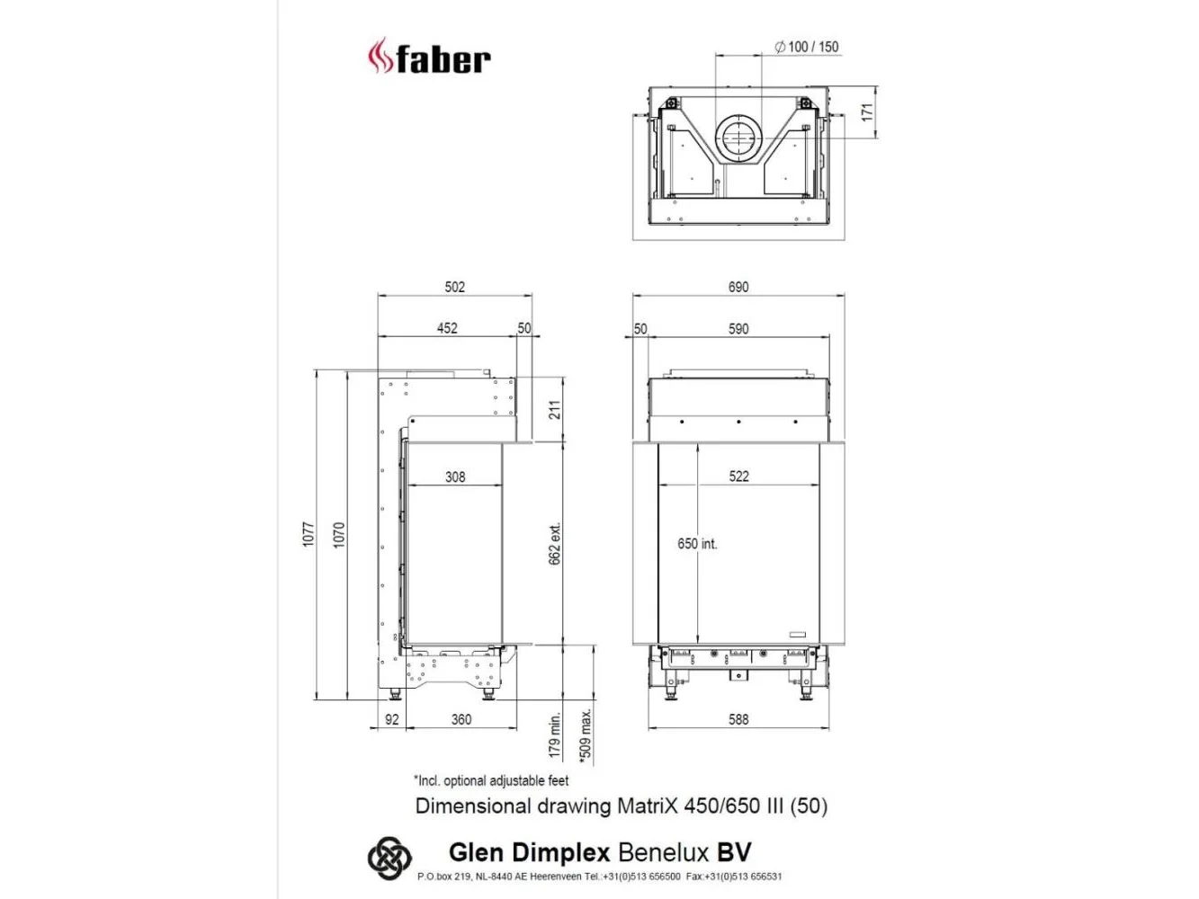 Faber Matrix 450/650 III 3-zijdige gashaard incl. Symbio Module (sfeerverlichting) Natural Gas Nederland, aansluiting afvoer kanaal: Ø100/150, inbouw maten: breedte: 690mm, hoogte: 1077mm, diepte: 502mm, zichtmaat ruit: breedte: 522mm, hoogte: 650mm, diepte: 308mm (nieuw in de verpakking)