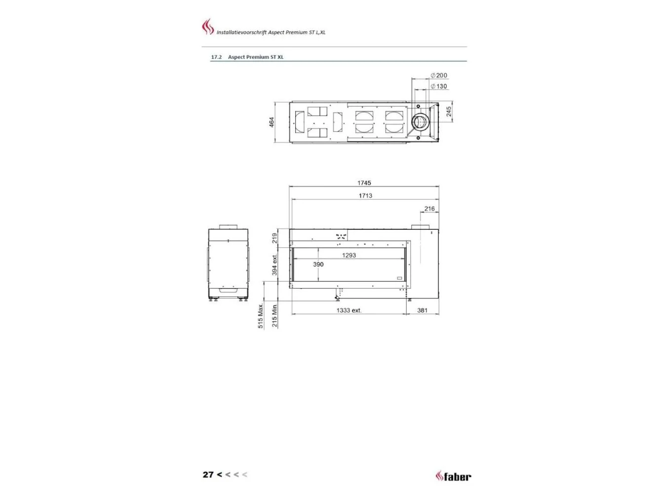 Faber gesloten gashaard model Aspect Premium ST (doorkijkhaard) XL Natural Gas Nederland, aansluiting afvoer kanaal: Ø130/200, inbouw maten: breedte: 1745mm, hoogte: 828mm, diepte: 490, zichtmaat ruit: breedte: 1293mm, hoogte: 390mm (showroom model) (gebruikt)