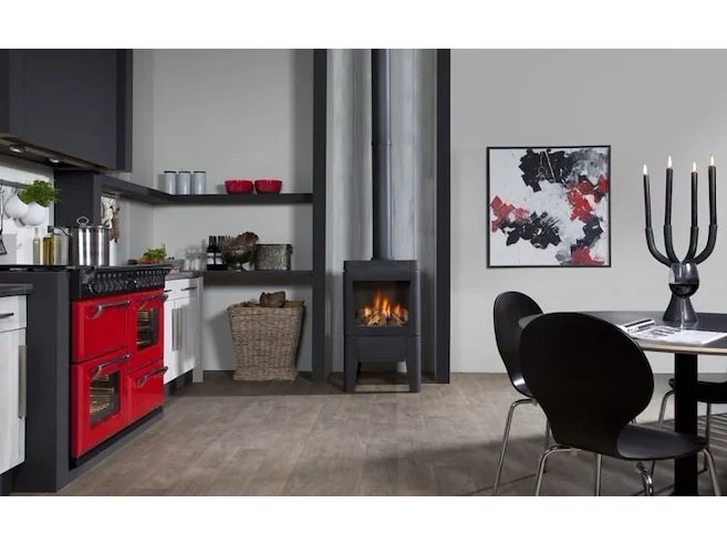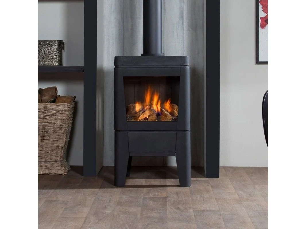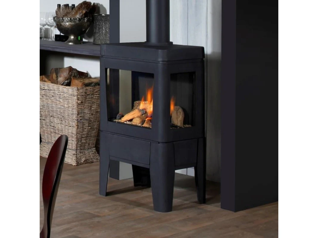 Faber vrijstaande gesloten gashaard model Odense 3-zijdig Natural Gas Nederland, aansluiting afvoer rookkanaal Ø100/150 vrijstaande maten: breedte: 560mm, hoogte: 980mm, diepte: 400mm (showroom model) (gebruikt)