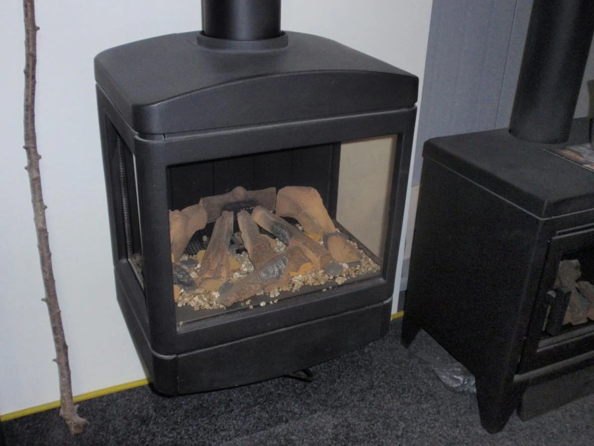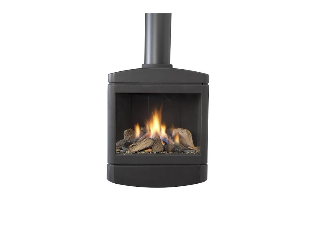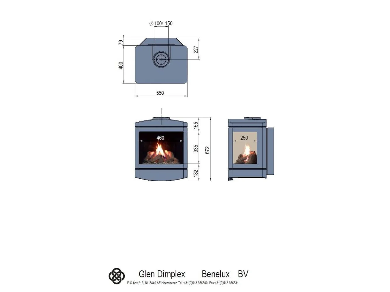 Faber vrijhangende gesloten gashaard model Skive 3-zijdig Natural Gas Nederland, aansluiting afvoer kanaal Ø100/150, vrijhangende maten: breedte: 550mm, hoogte: 672mm, diepte: 479,00 (showroom model) (gebruikt)