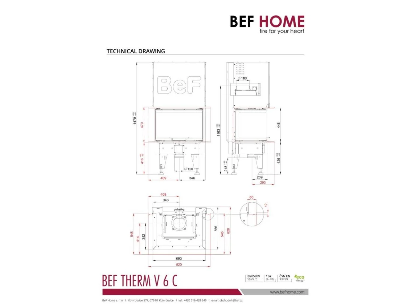 BEF-Home Hout liftdeur haard model Therm V6C Inbouw maten: Breedte: 820mm, hoogte: 1479mm, diepte: 628mm, Ruitmaat: breedte: 625mm hoogte: 367mm, diepte: 400 Rookkanaal Ø180, luchttoevoer (onderzijde haard) Ø120 (showroom model niet gebruikt)
