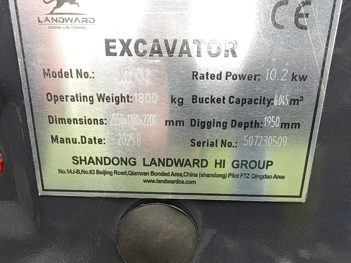 1800 kg minigraafmachine met 3 cilinder Kubota D902 eur5 dieselmotor van 11.8 KW. uitgerust met servo bediening. Voorzien van cabine, zwenk giek met radius van 1500mm, dozerblad 1100mm, hydraulisch bakwisselsysteem, hydrauliekpomp 22L/min, opbreekkracht 10KN, tankinhoud 9.5 liter. ongebruikte machine