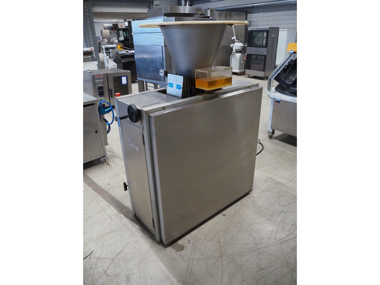 Benier dough divider, type: Afweger-B84, number: 20834A/801761, year of construction: 2002, 400 V, 3 Ph, 50 Hz, 4 A, plastic belt, belt width: 220 mm, total dimensions: 1450 mm x 720 mm x 1630 mm. Kavel locatie: Looyenbeemd 11, 5652 BH Eindhoven, Nederland