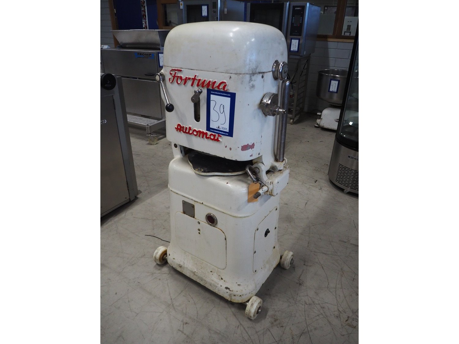 Fortuna mobile dough divider and rounder, model: Automat, dimensions: 800 mm x 700 mm x 1530 mm. Missing plate. Kavel locatie: Looyenbeemd 11, 5652 BH Eindhoven, Nederland