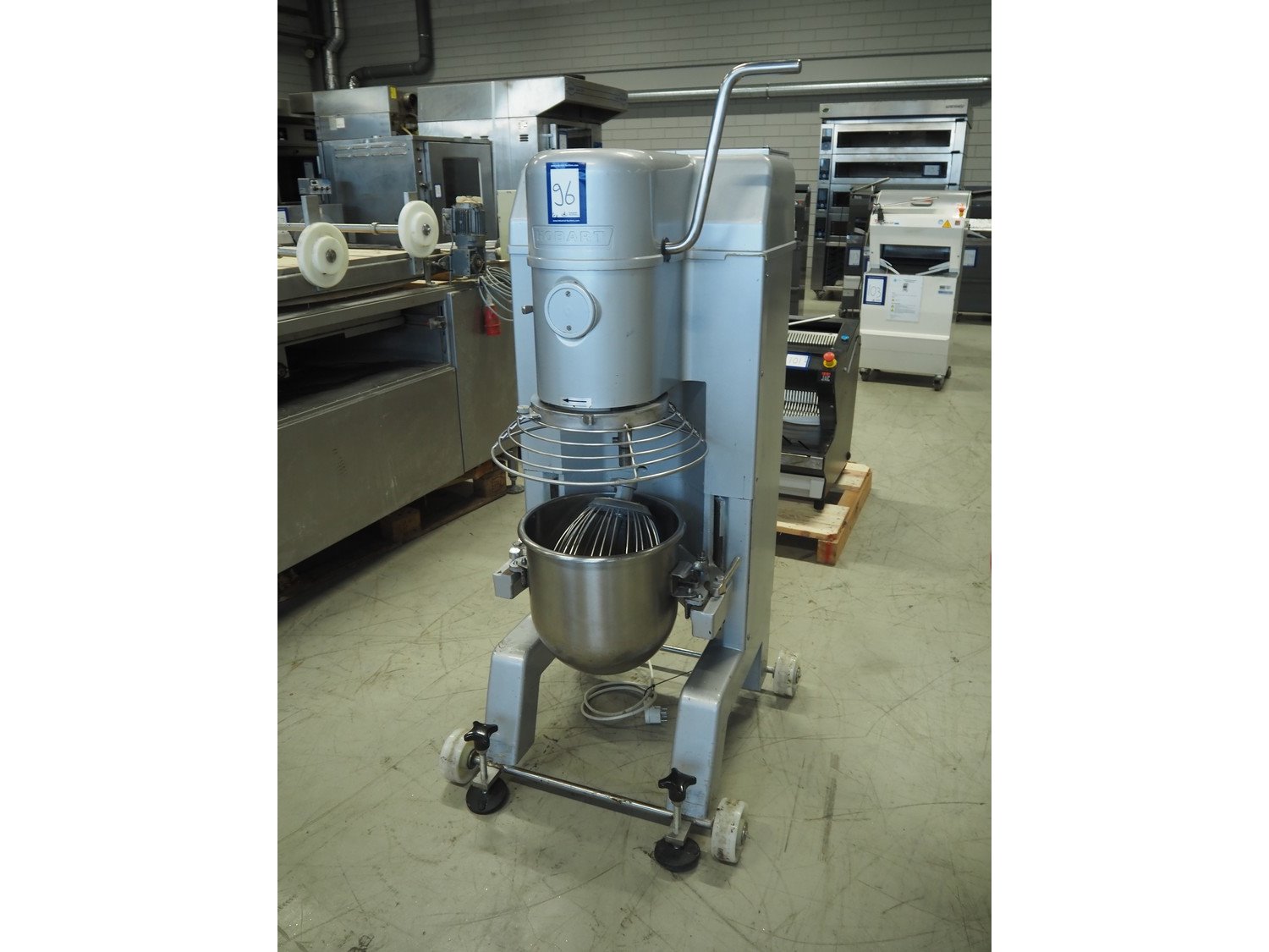 Hobart mobile mixer, model: NCM40, serial number: 97104702, 380/415 V, 3 Ph, 50 Hz, 2.6 A, 1.1 kW, capacity: 40 liter, bowl dimensions: Ø 320 mm x 350 mm, total dimensions: 700 mm x 740 mm x 1520 mm. Including extra bowl, batter mixers and hook. Kavel locatie: Looyenbeemd 11, 5652 BH Eindhoven, Nederland