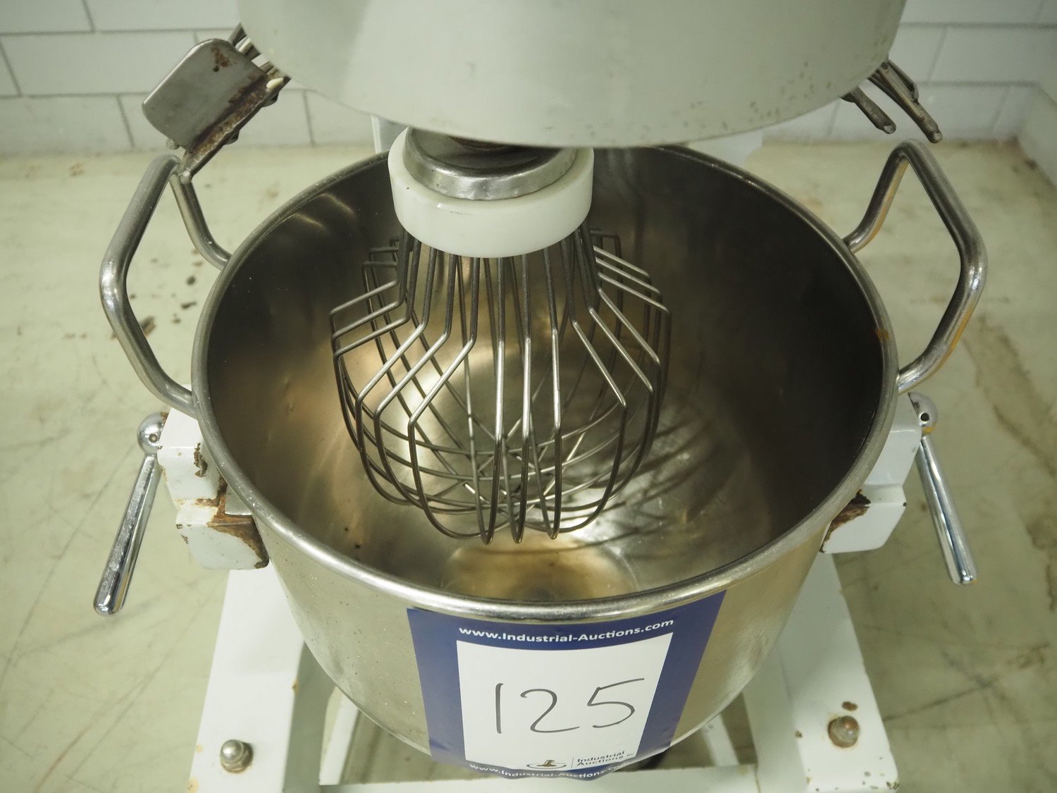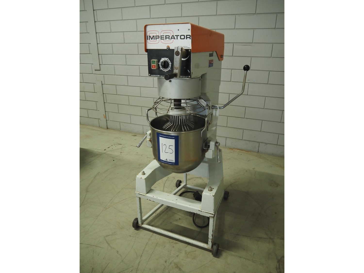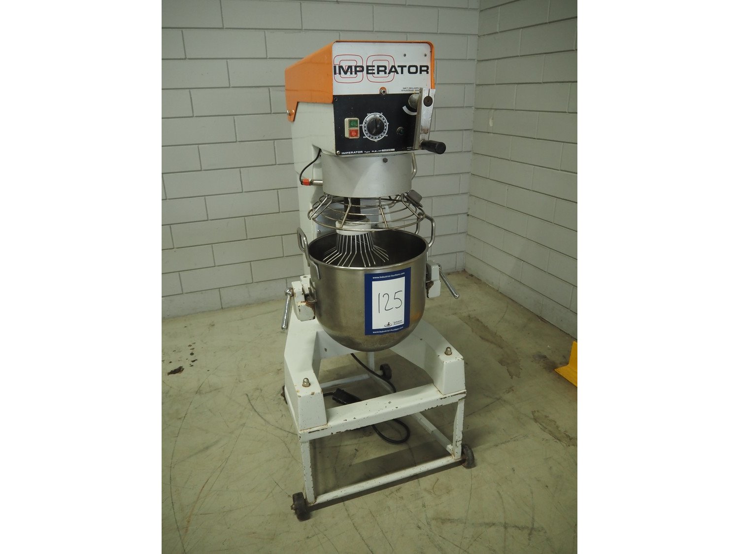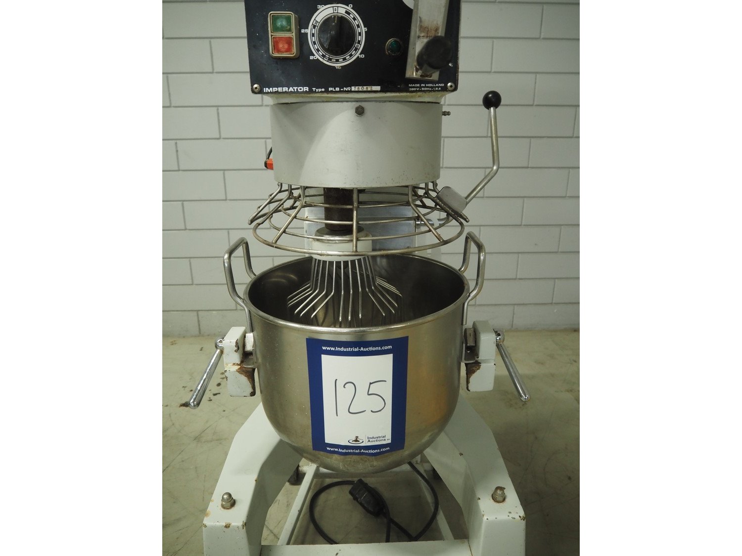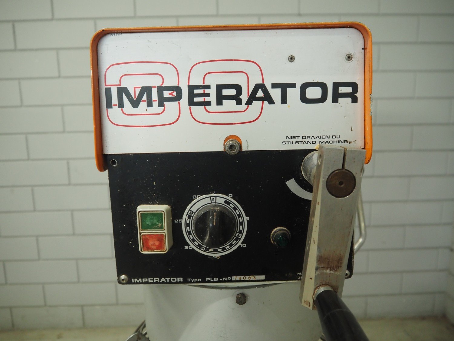 Imperator mixer, type: PLB 30, number: 78082, 380 V, 50 Hz, 1.8 A, bowl dimensions: ø 360 mm x 360 mm, total dimensions: 710 mm x 690 mm x 1430 mm. Including batter and hook. Kavel locatie: Looyenbeemd 11, 5652 BH Eindhoven, Nederland