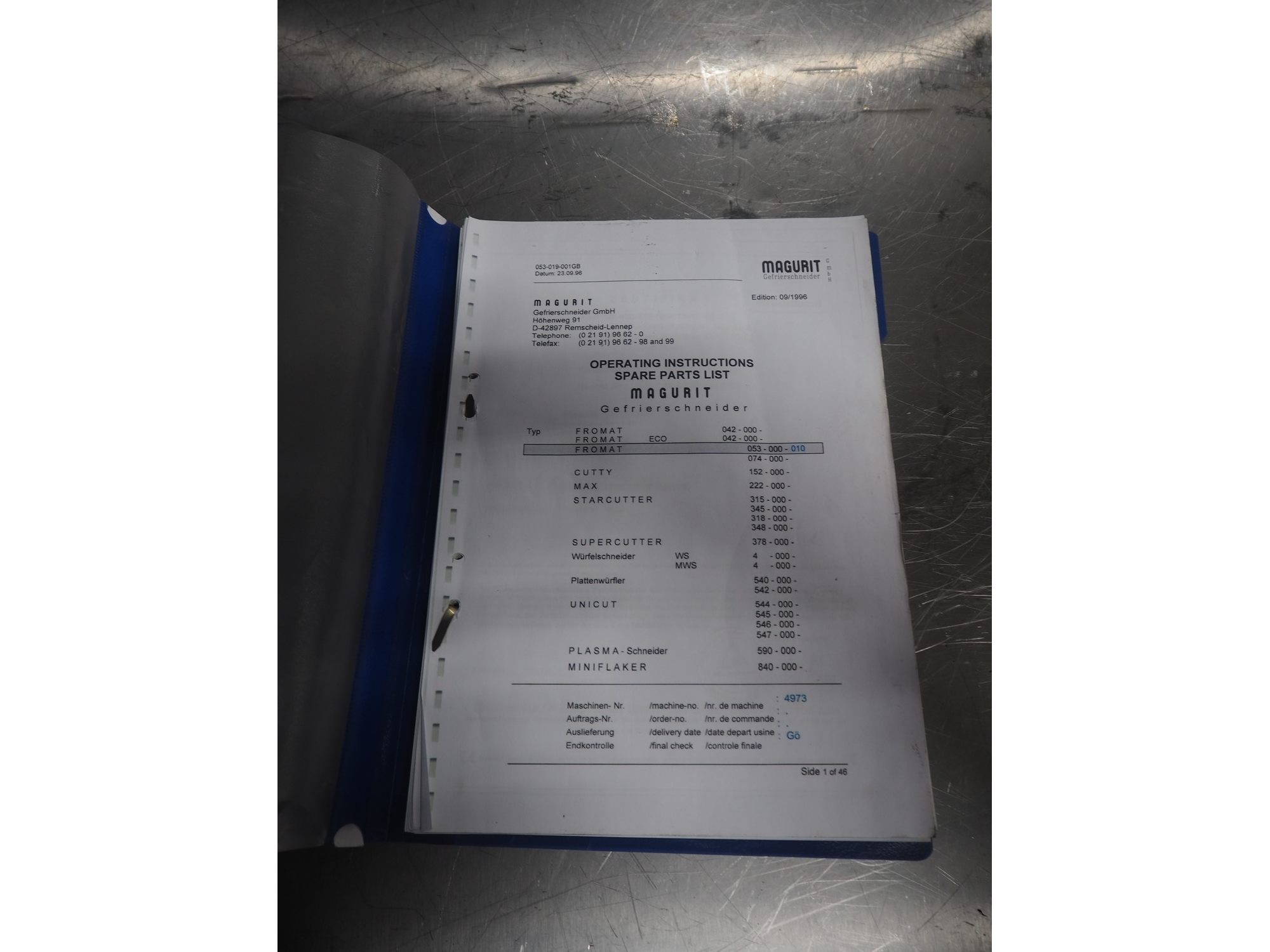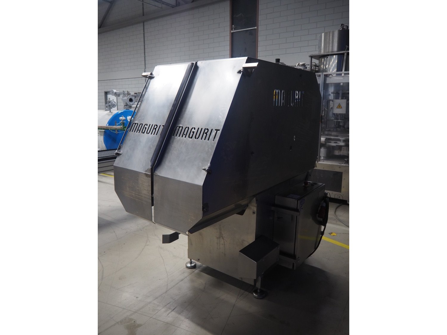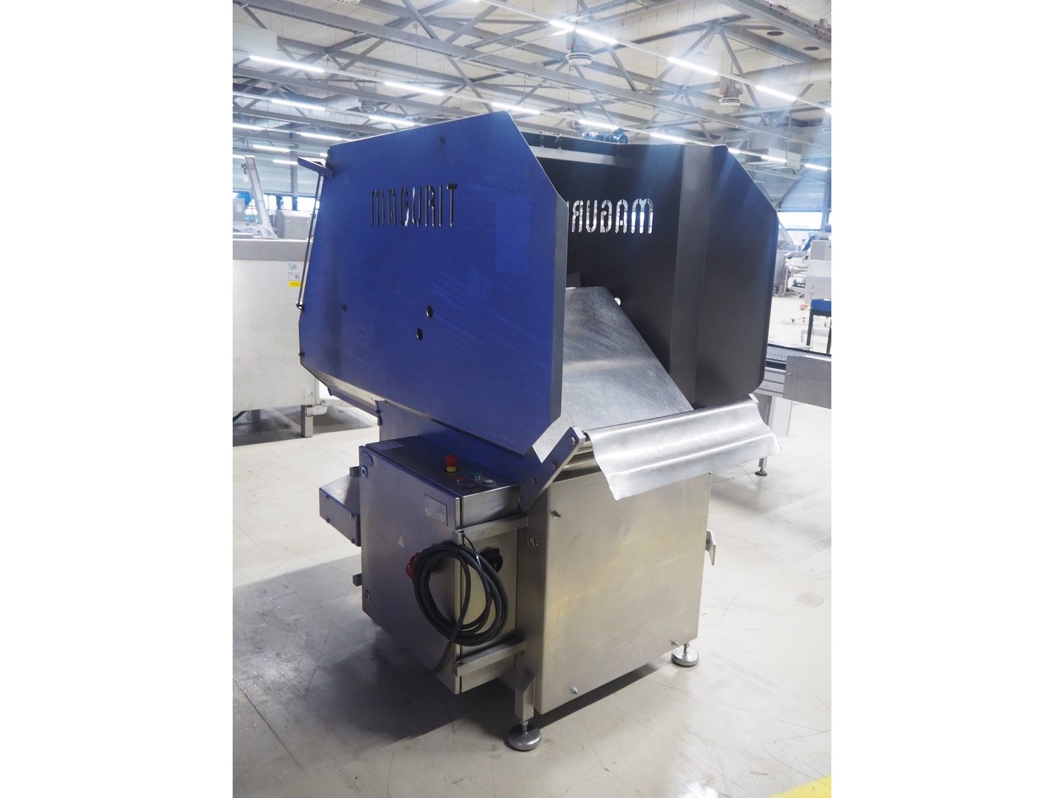 Magurit frozen block cutter, type: 053, machine number: 4973, year of construction: 2003, 230 V, 5.5 kW, maximum block size: 500 mm x 600 mm x 240 mm, total dimensions: 1850 mm x 1100 mm x 1750 mm. Kavel locatie: Looyenbeemd 11, 5652 BH Eindhoven, Nederland