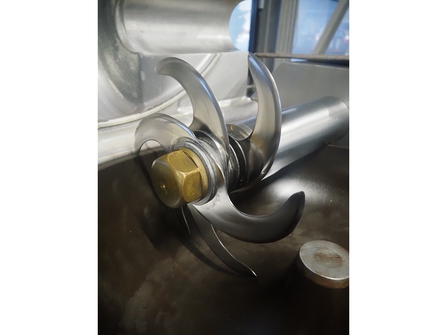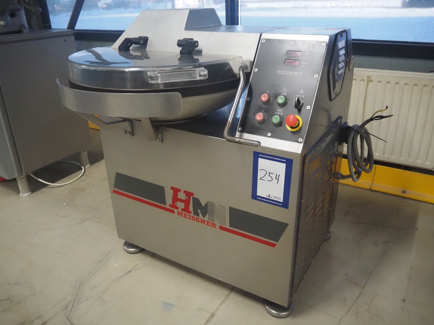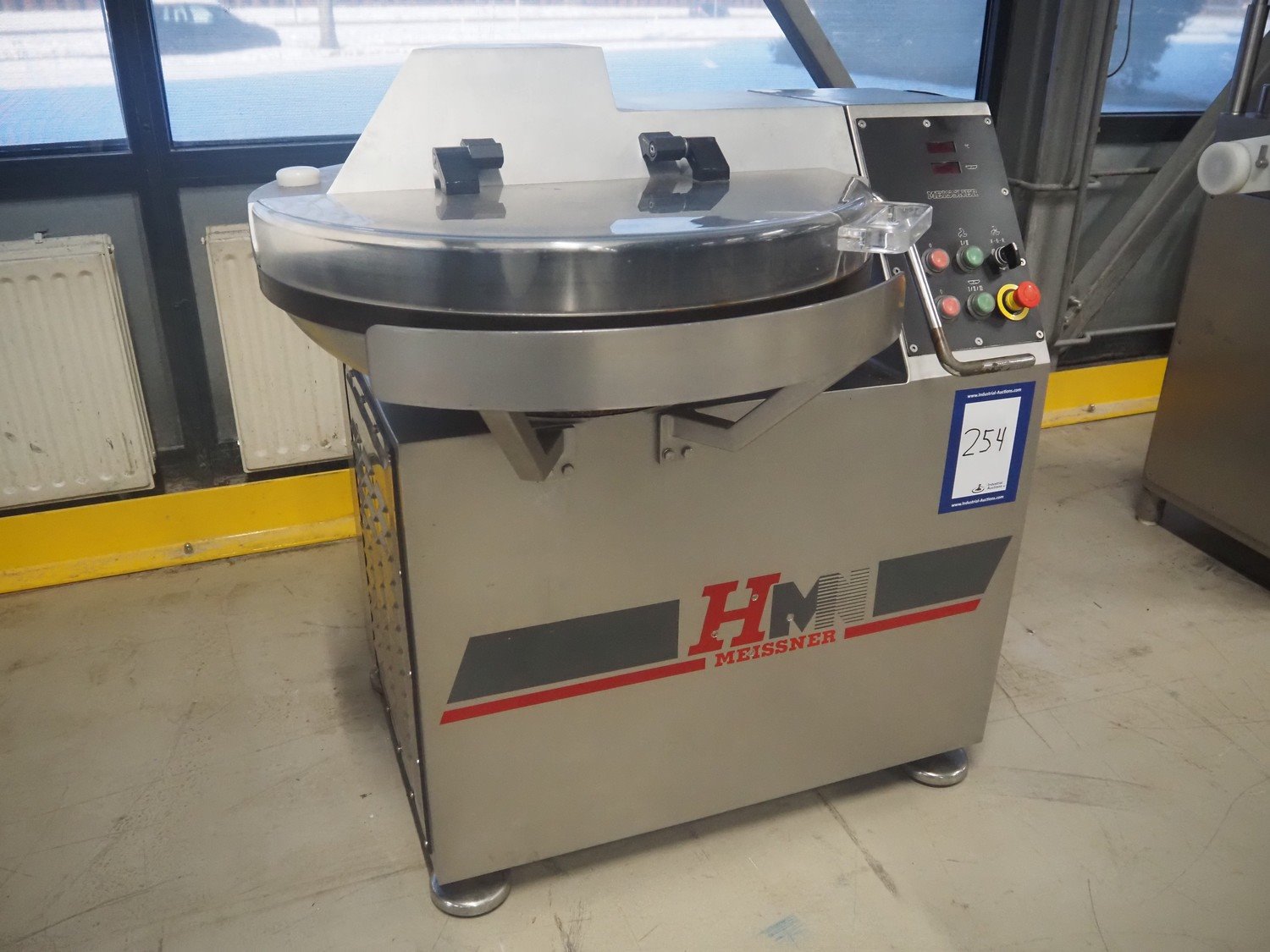 Meissner bowl cutter, steel bowl, s/s knives, dimensions bowl: Ø 760 mm x 140 mm, total dimensions: 1100 mm x 1000 mm x 1200 mm. Kavel locatie: Looyenbeemd 11, 5652 BH Eindhoven, Nederland