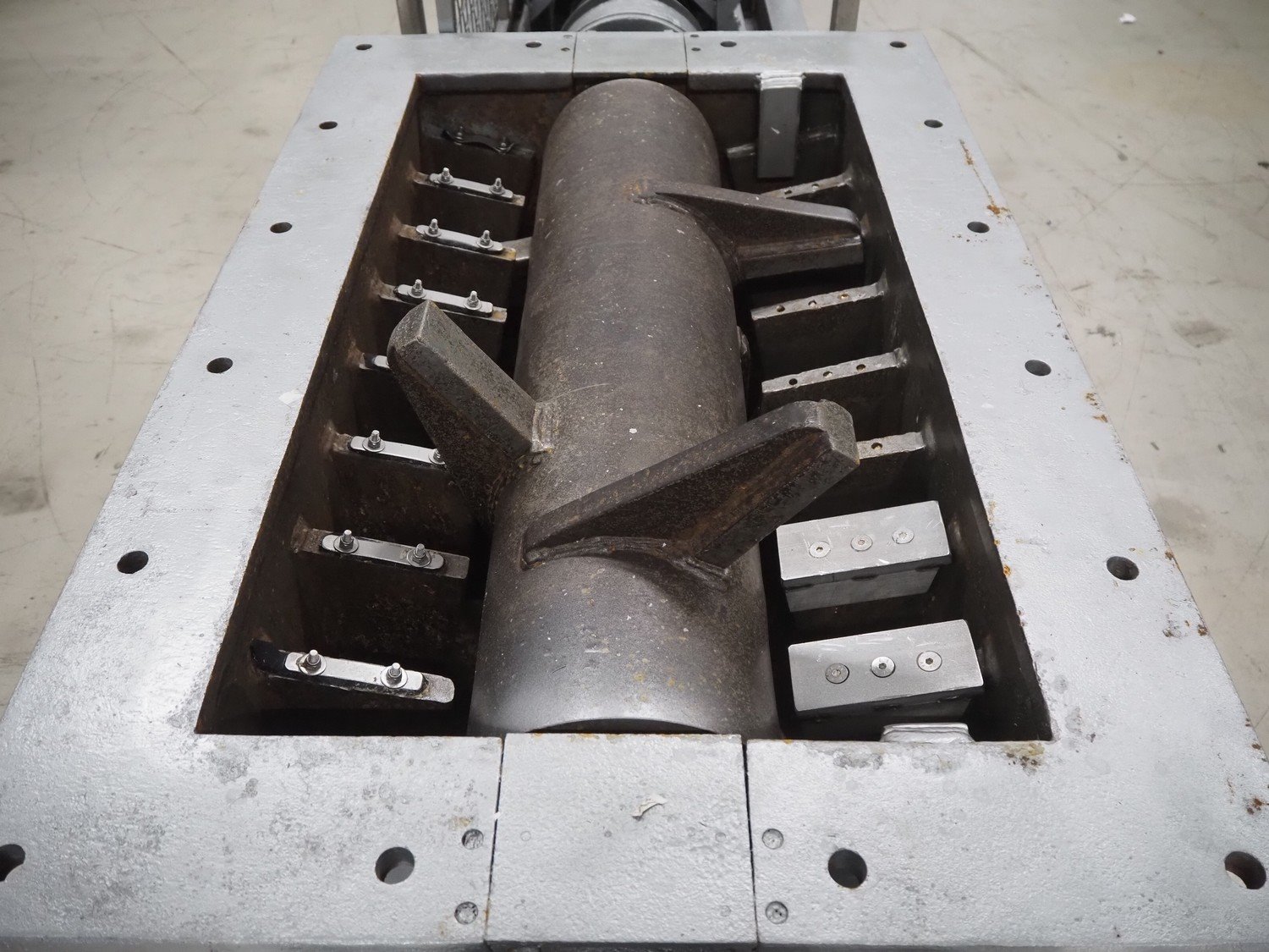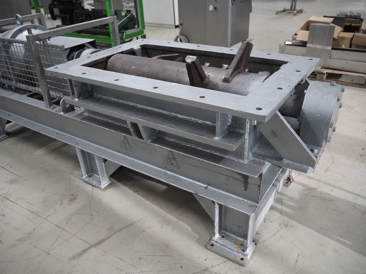 Steel shredder, clearance: 1100 mm x 620 mm, total dimensions: 3550 mm x 920 mm x 1100 mm. Kavel locatie: Looyenbeemd 11, 5652 BH Eindhoven, Nederland
