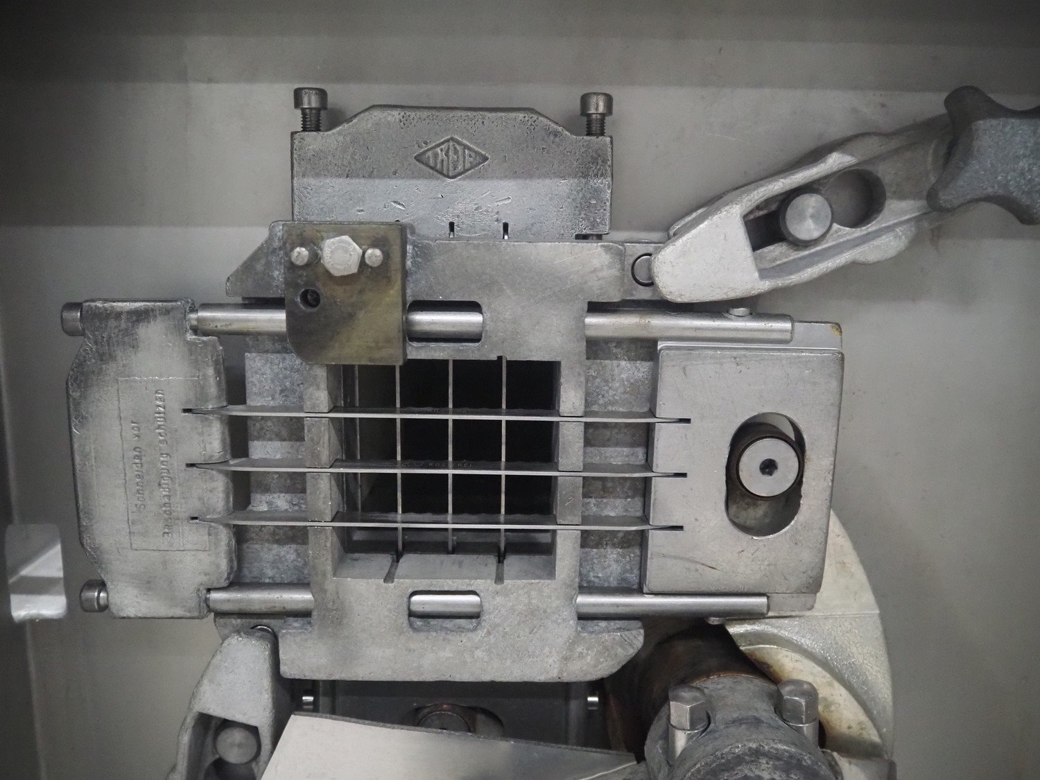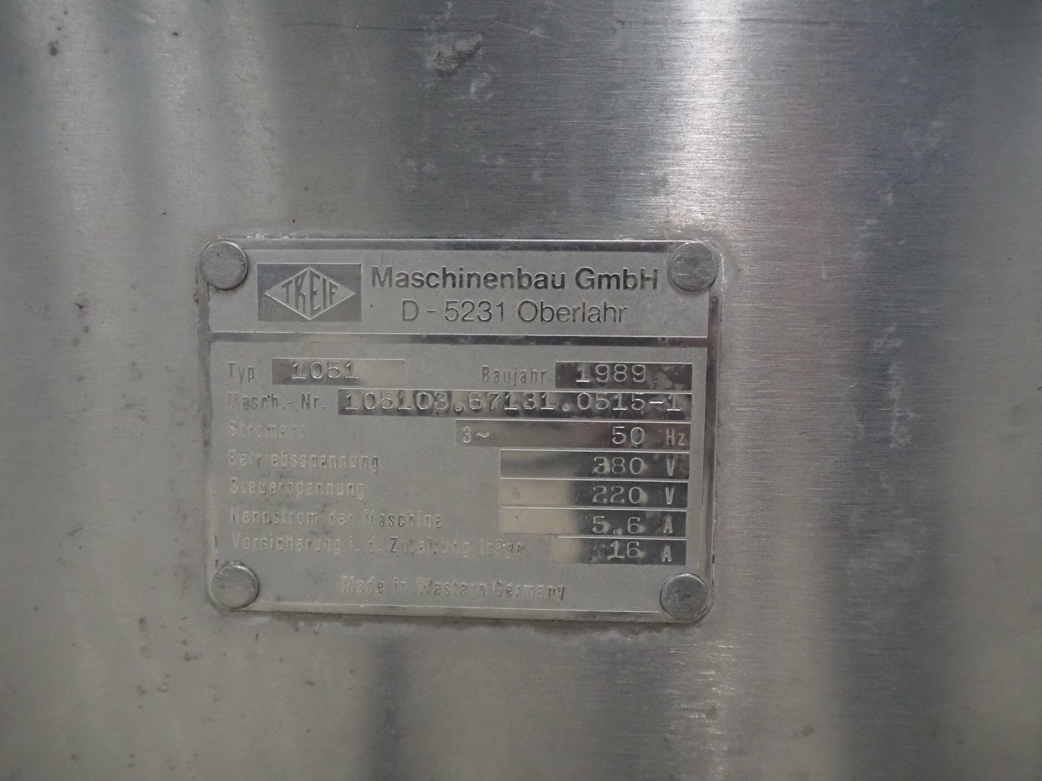 Treif Maschinenbau GmbH mobile dicer, type: 1051, machine number: 105103.67131.0515-1, year of construction: 1989, 380-220 V, 3 Ph, 50 Hz, 5.5 A, dimensions chamber: 85 mm x 85 mm, total dimensions: 1300 mm x 700 mm x 1500 mm. Kavel locatie: Looyenbeemd 11, 5652 BH Eindhoven, Nederland