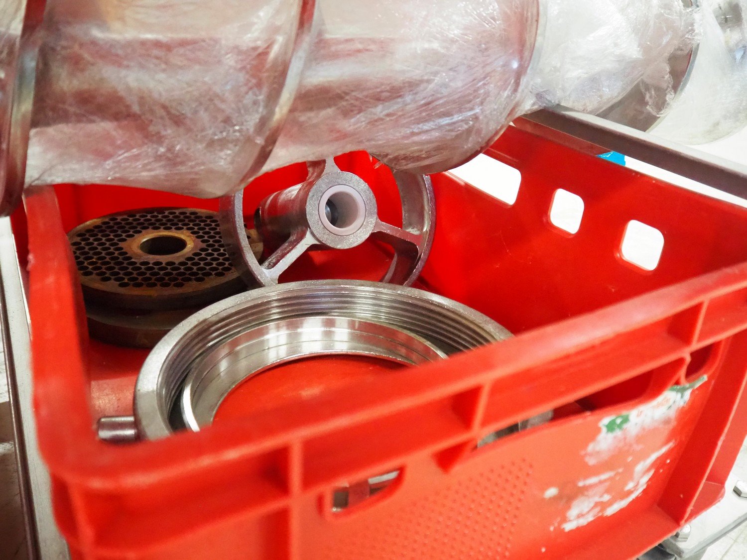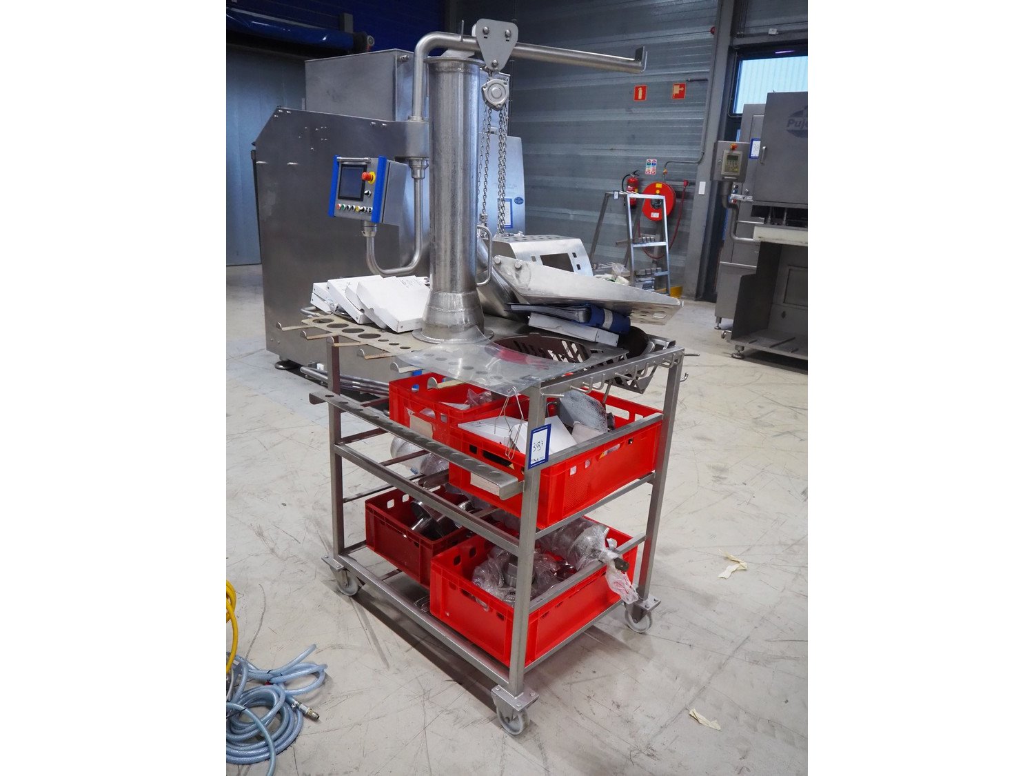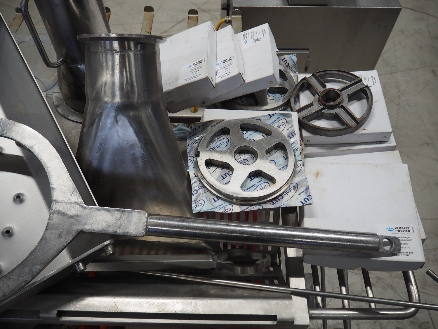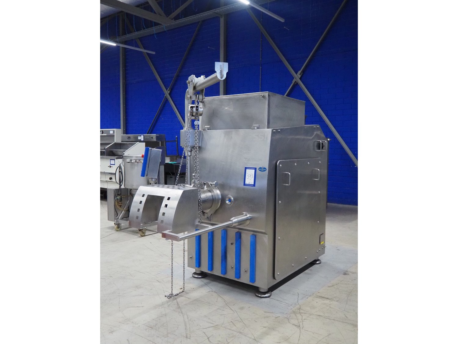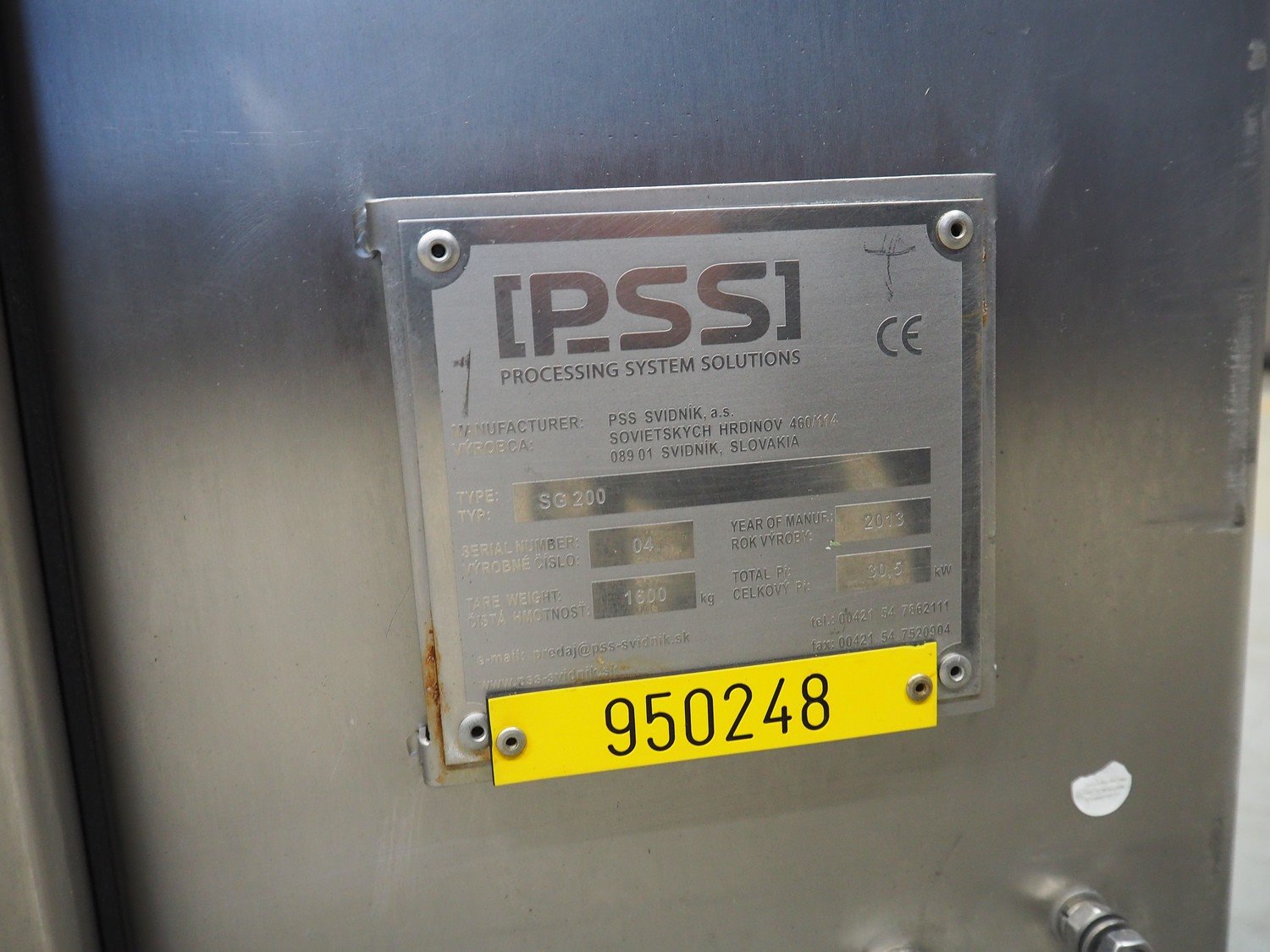 PSS Svidnik a.s. grinder, type: SG 200, serial number: 04, year of construction: 2013, 30.5 kW, weight: 1600 kg, plate diameter: 200 mm, total dimensions: 2700 mm x 1300 mm x 2350 mm. Including s/s trolley with parts, dimensions: 1250 mm x 1000 mm x 1050 mm. Kavel locatie: Looyenbeemd 11, 5652 BH Eindhoven, Nederland