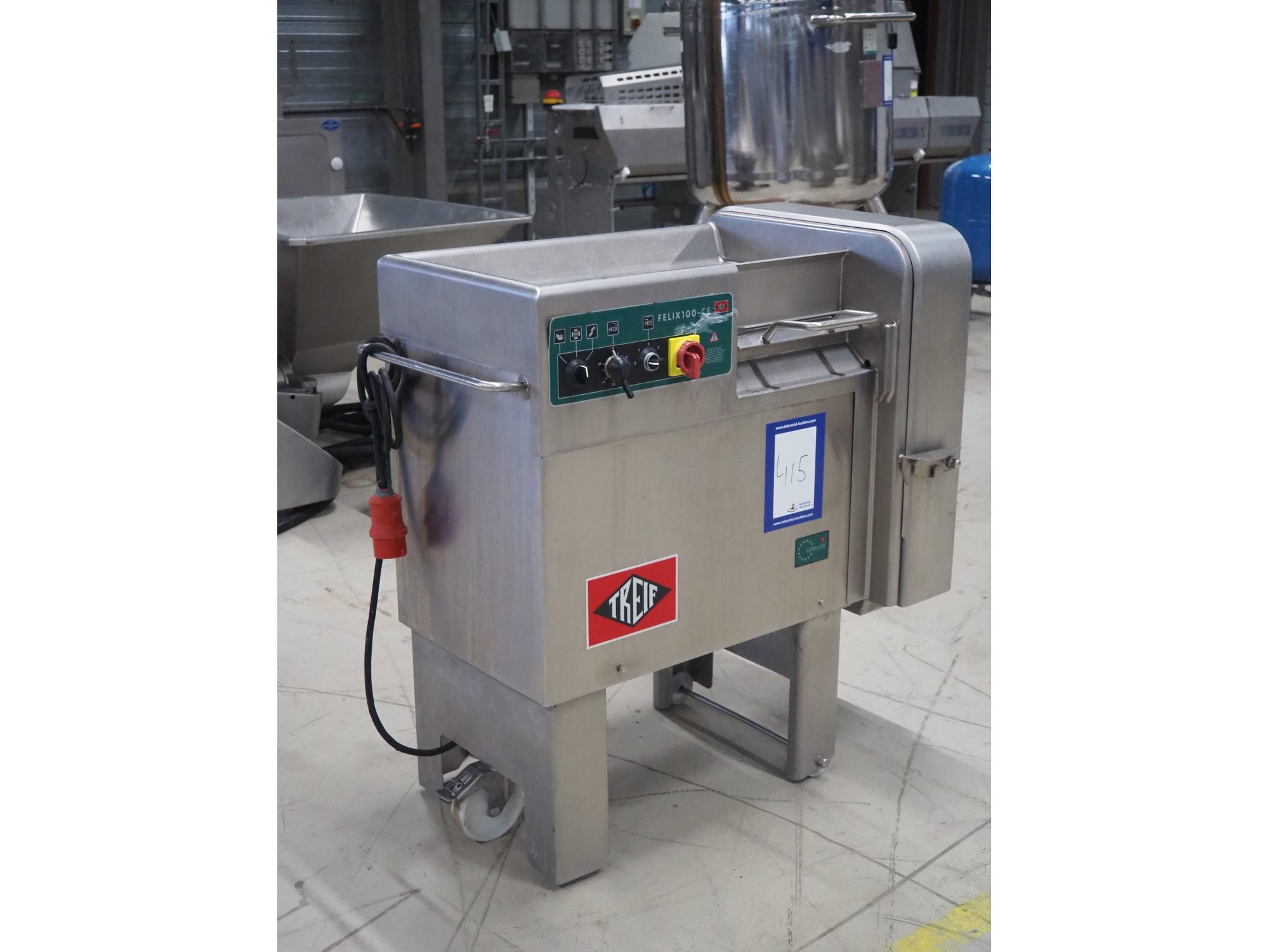 Treif Maschinenbau GmbH mobile dicer, type: 2710, machine number: 271004.69131.0495, year of construction: 1999, 400/230 V, 50 Hz, 3 A, 1.0 kW, 174 kg, dimensions chamber: 95 mm x 95 mm, total dimensions: 1000 mm x 620 mm x 1000 mm. Kavel locatie: Looyenbeemd 11, 5652 BH Eindhoven, Nederland