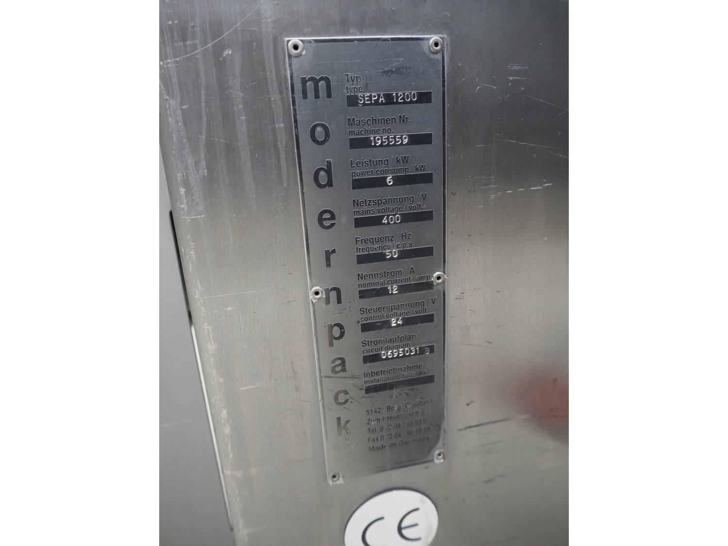 Sepamatic separator, type: SEPA 1200, machine number: 195559, 400 V, 50 Hz, 6 kW, diameter drum: 300 mm, diameter perforations: 2 mm, total dimensions: 1300 mm x 1170 mm x 1800 mm. Kavel locatie: Looyenbeemd 11, 5652 BH Eindhoven, Nederland