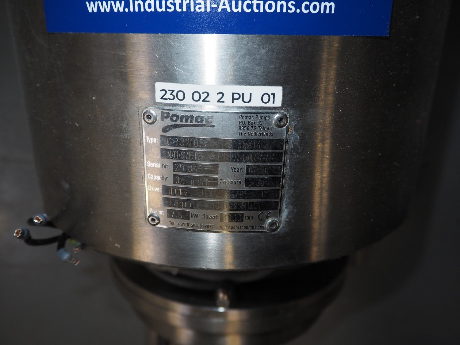Pomac centrifugal pump, type: CPC21055 / 0155X14, serial number: 29 848, year of construction: 07-2019, 7.5 kW, 3000 rpm, capacity: 3.5 m³ per hour, dimensions: 650 mm x 300 mm x 400 mm. Kavel locatie: Drosteweg 6-8, 8108 NB Raalte, Nederland