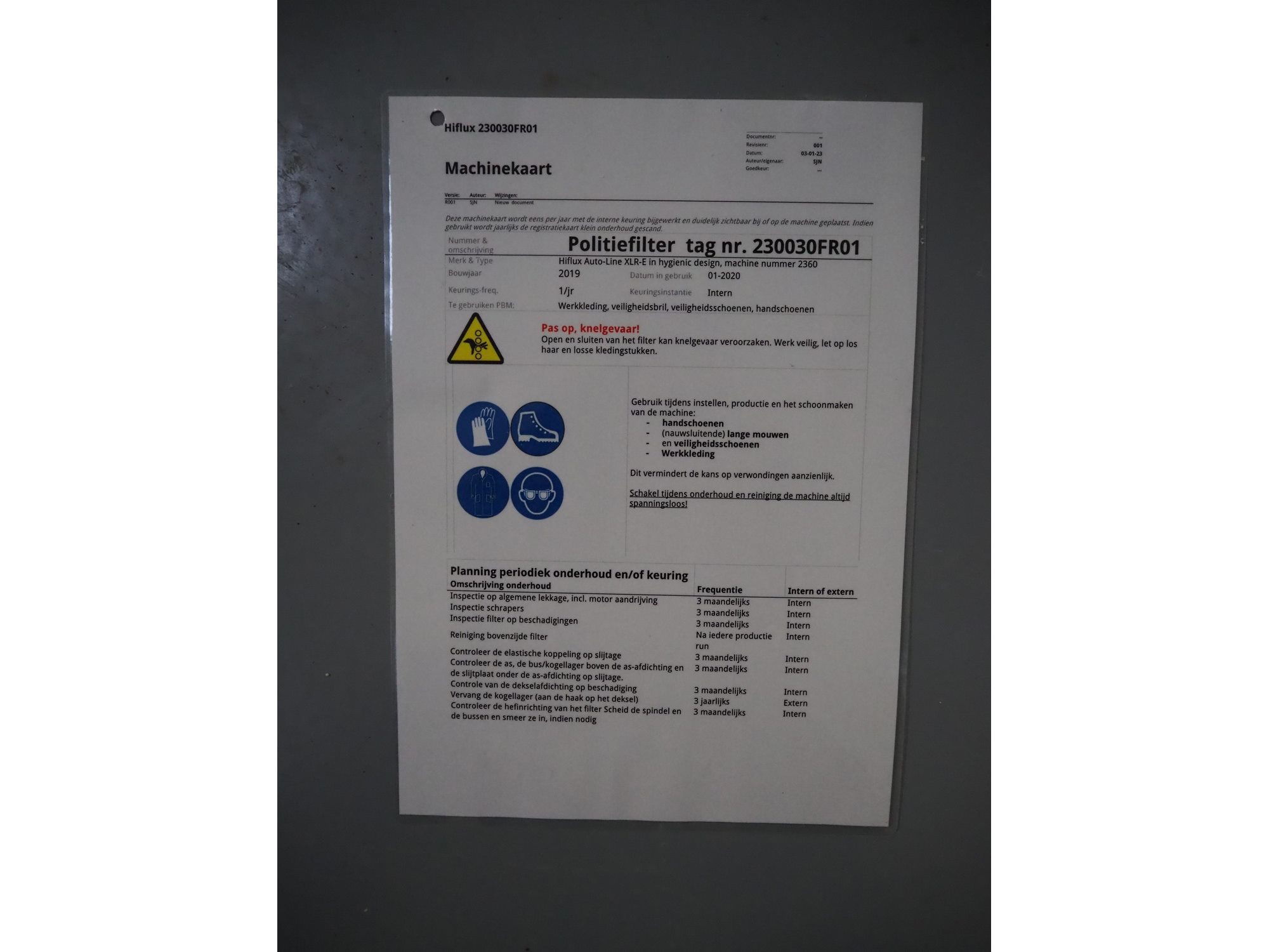 HiFlux Filtration A/S filter, type: Auto-line XLR-E Hygienic, serial number: 2360, year of construction: 2019, volume: 35 liter, dimensions: 700 mm x 500 mm x 2200 mm. Kavel locatie: Drosteweg 6-8, 8108 NB Raalte, Nederland