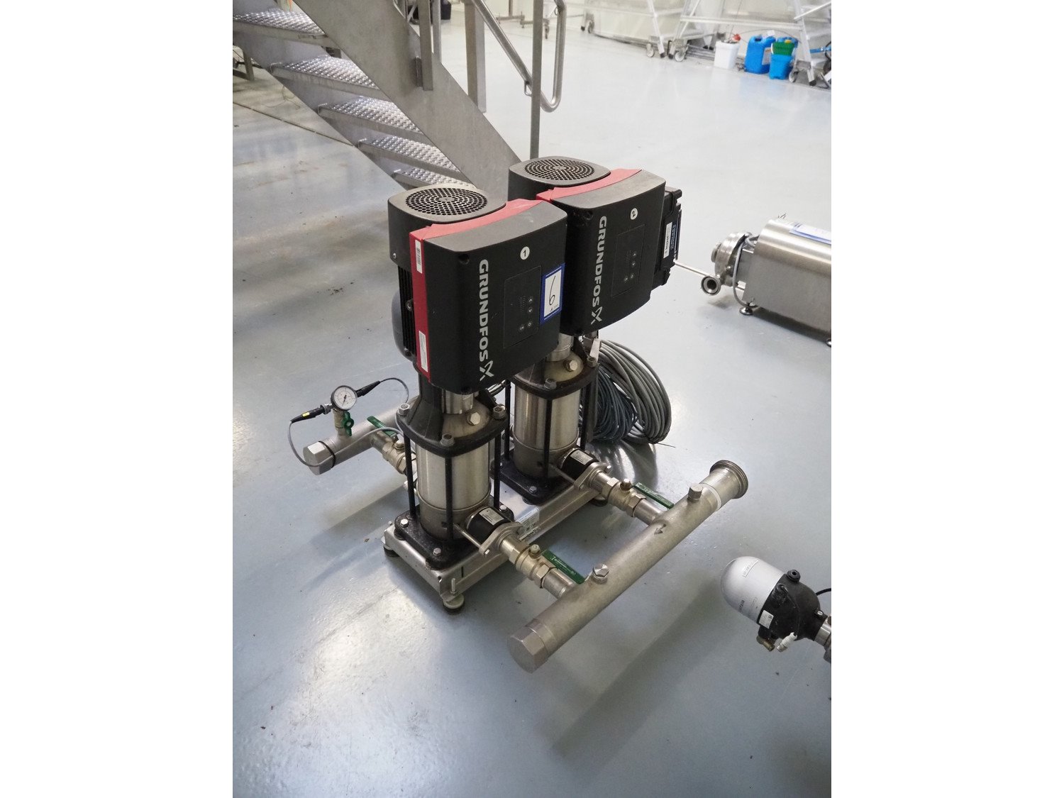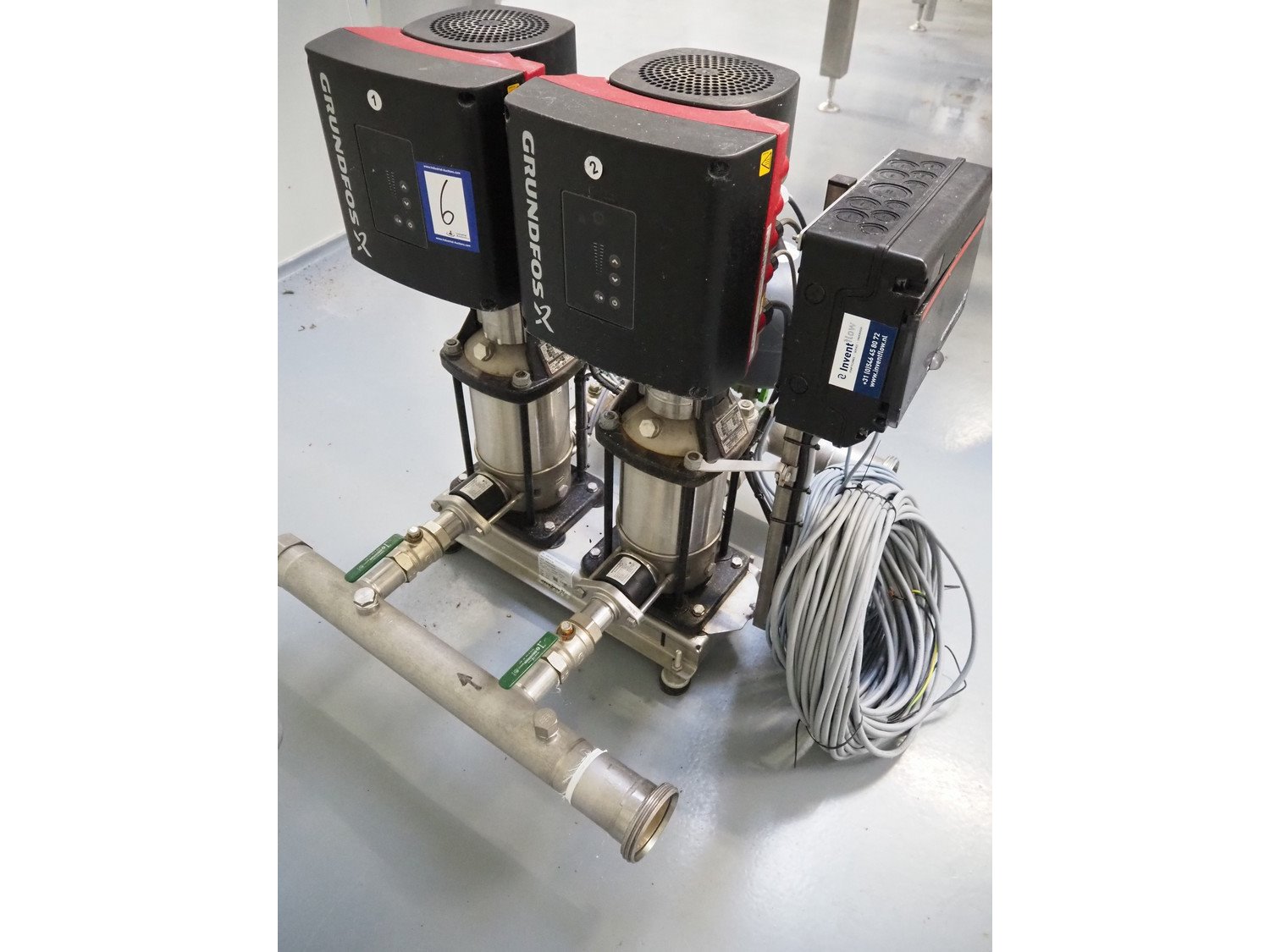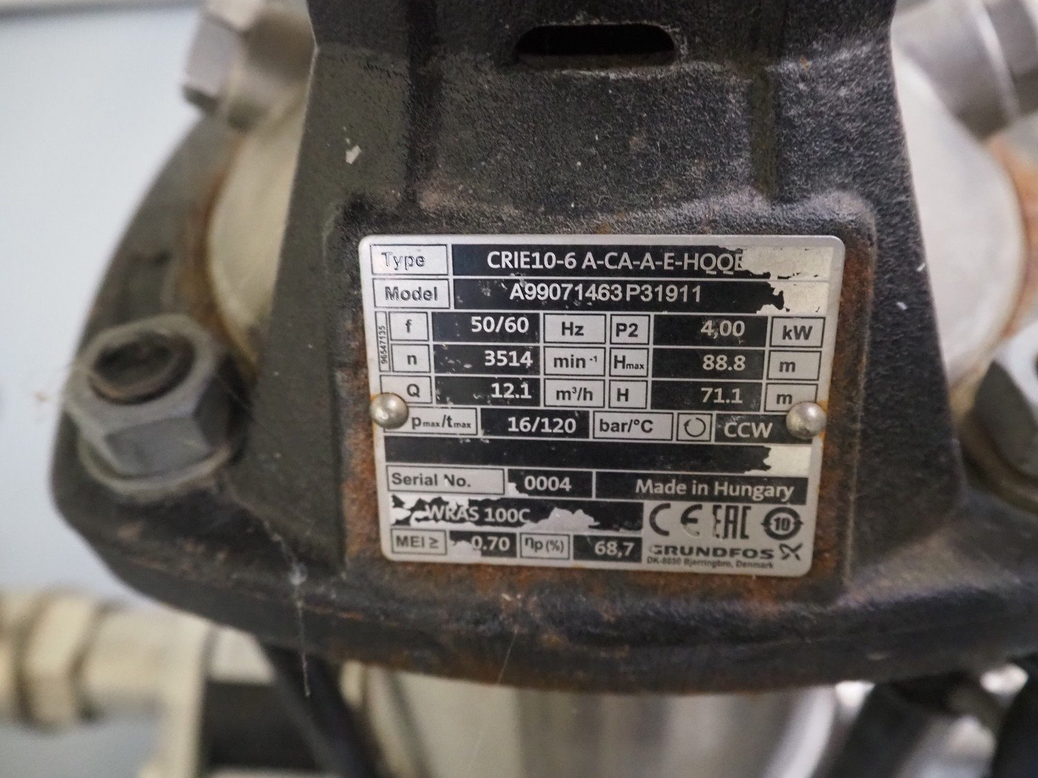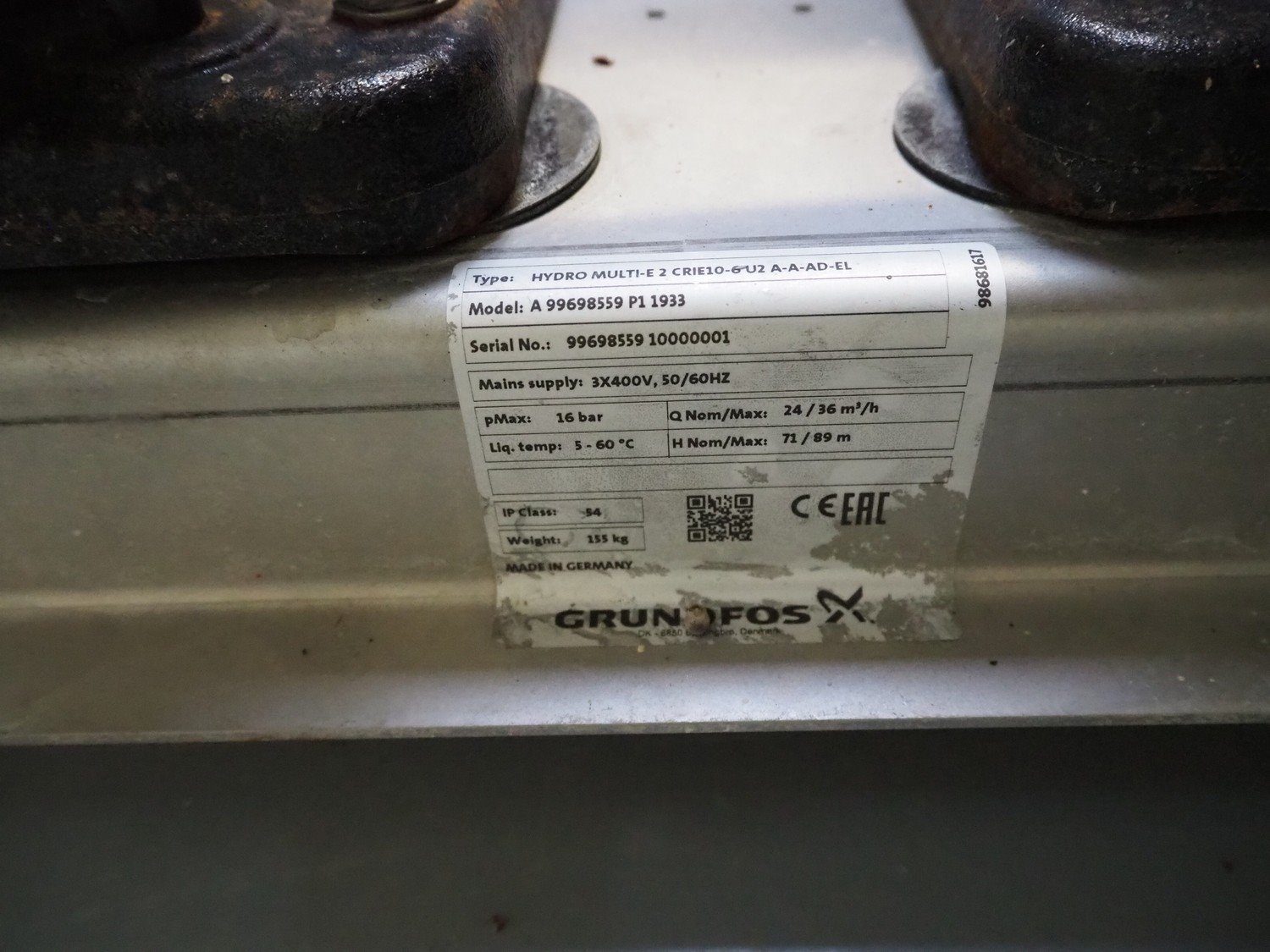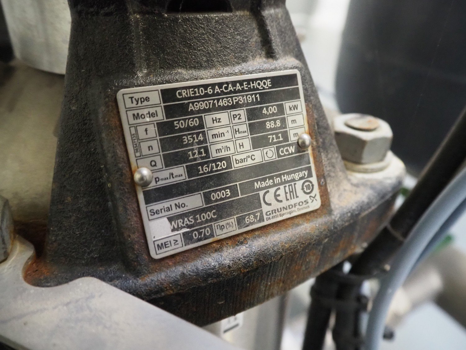 2 Grundfos circulation pumps, type: (2x) CRIE10-6 A-CA-A-E-HQQE, model: A99071463P31911, 50/60 Hz, 4 kW, capacity: 12.1 m³ per hour, dimensions: 1000 mm x 800 mm x 950 mm. Kavel locatie: Drosteweg 6-8, 8108 NB Raalte, Nederland