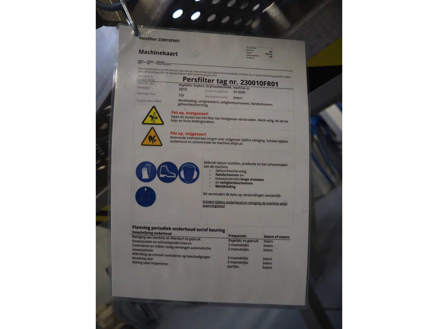 Keydollar BV pressure filter, type: Bio XL, serial number: 34-2019-101, year of construction: 2019, weight: 1376 kg, worm diameter: 300 mm, tier: 125 mm, total dimensions: 4200 mm x 1350 mm x 2000 mm. Including 2 filters, inside dimensions: Ø 300 mm x 520 mm, total dimensions: Ø 530 mm x 520 mm. Kavel locatie: Drosteweg 6-8, 8108 NB Raalte, Nederland