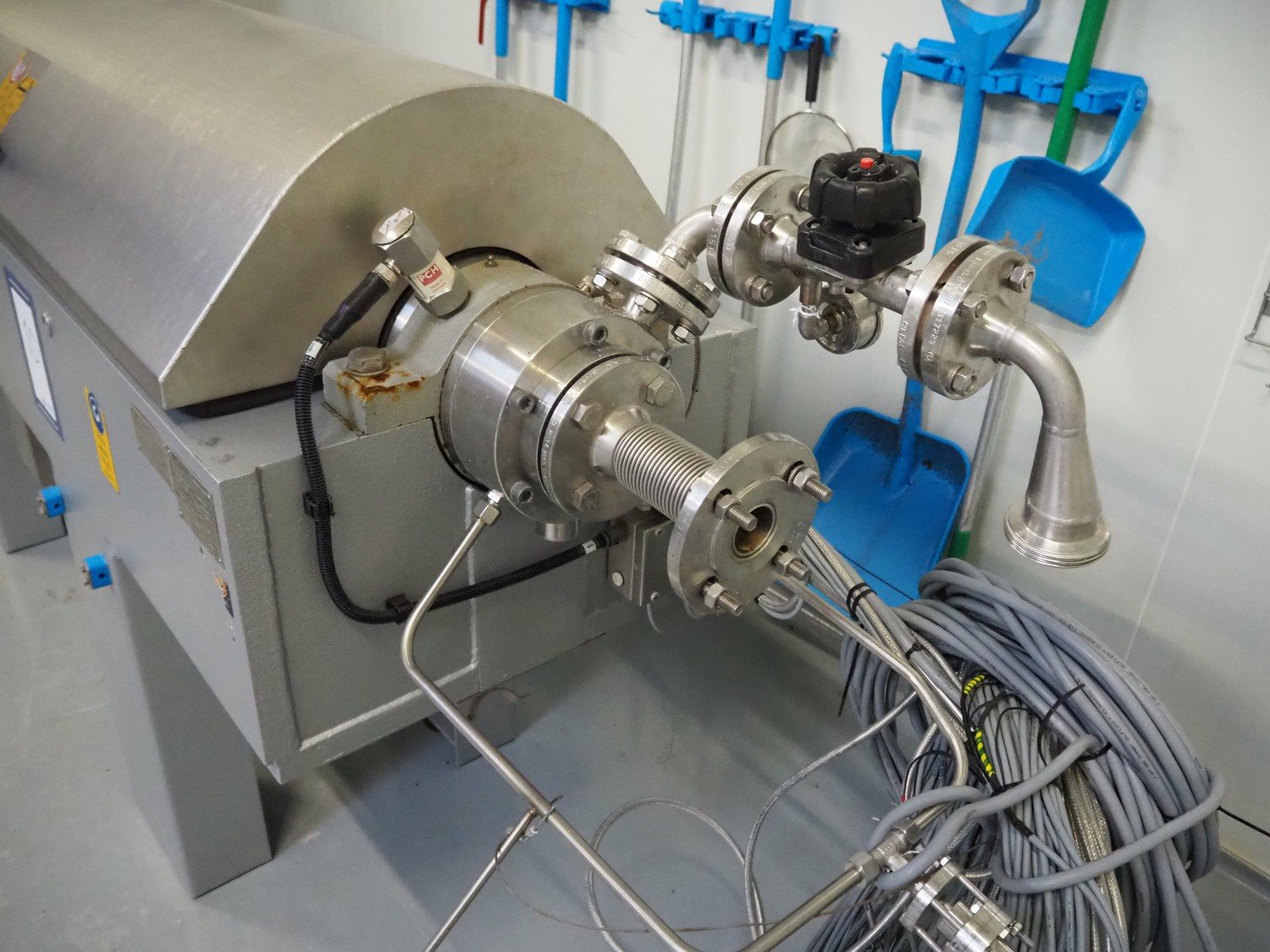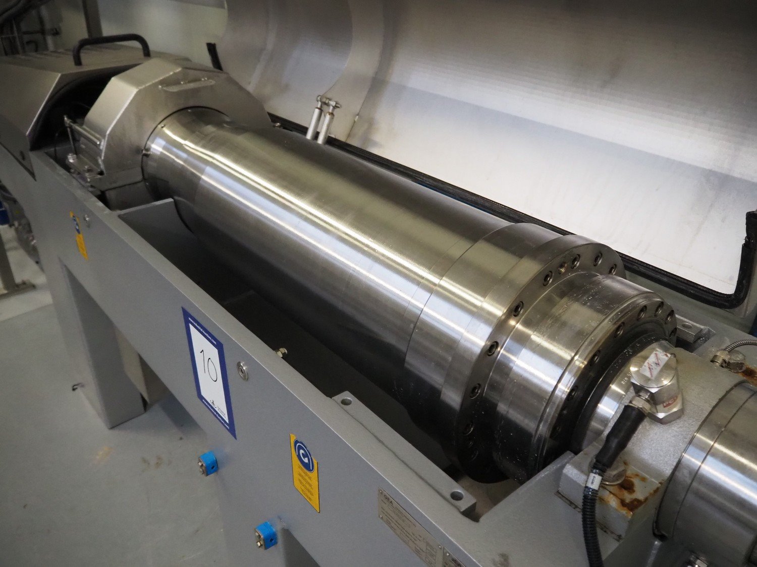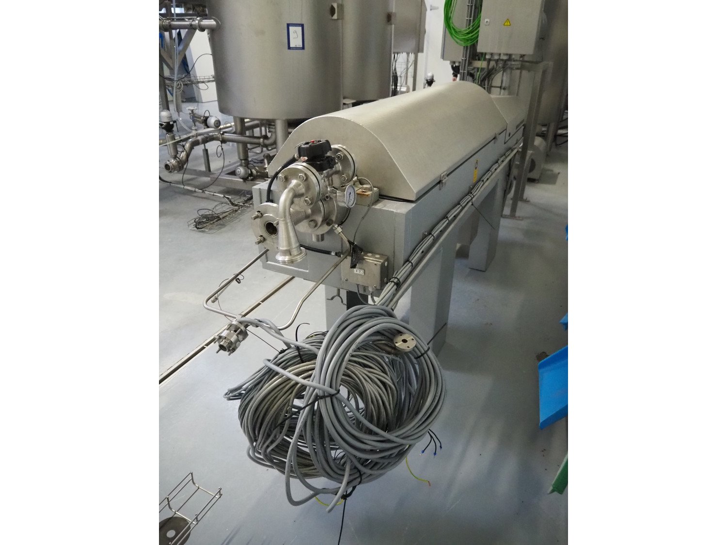 GEA Westfalia Separator AG decanter, model: CD 305-01-02, serial number: 8002314, year of construction: 2001, maximum rpm: 4500, capacity: 2.6 kg/dm³, dimensions decanter: 3100 mm x 650 mm x 1250 mm, dimensions switch cabinet: 950 mm x 400 mm x 2550 mm, including 2 steel frames, dimensions: (2x) 650 mm x 260 mm x 400 mm. Kavel locatie: Drosteweg 6-8, 8108 NB Raalte, Nederland