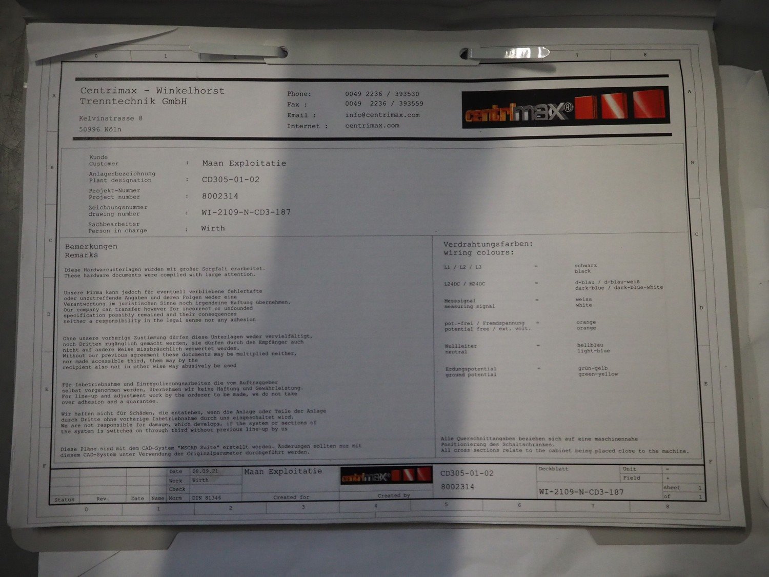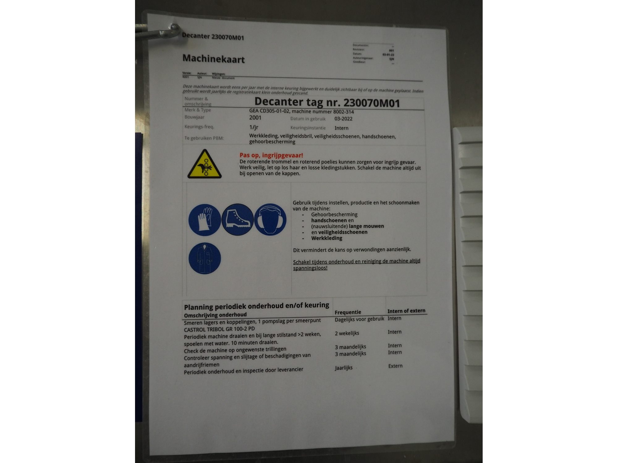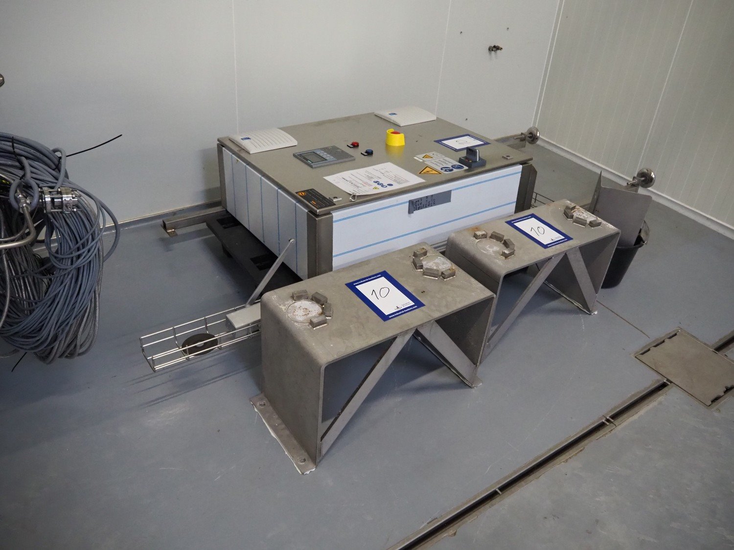 GEA Westfalia Separator AG decanter, model: CD 305-01-02, serial number: 8002314, year of construction: 2001, maximum rpm: 4500, capacity: 2.6 kg/dm³, dimensions decanter: 3100 mm x 650 mm x 1250 mm, dimensions switch cabinet: 950 mm x 400 mm x 2550 mm, including 2 steel frames, dimensions: (2x) 650 mm x 260 mm x 400 mm. Kavel locatie: Drosteweg 6-8, 8108 NB Raalte, Nederland