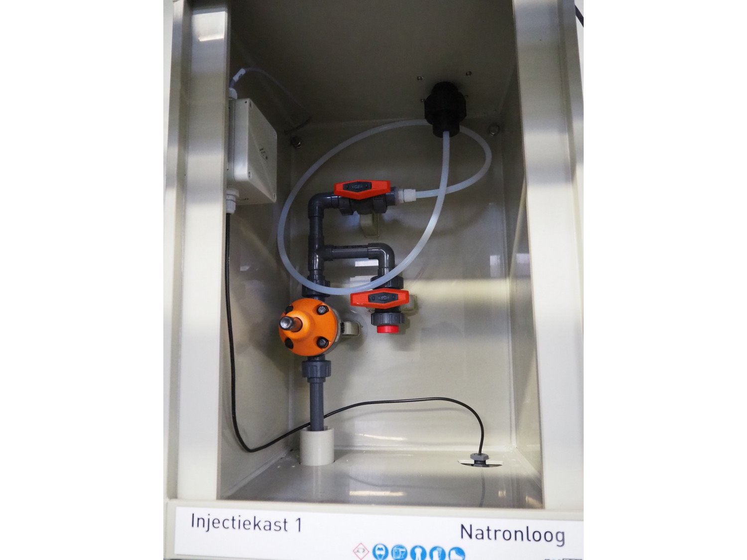 Mosman caustic soda injection cabinet, serial number: 23.2119.30, year of construction: 08/2023, dimensions: 400 mm x 450 mm x 600 mm. Kavel locatie: Drosteweg 6-8, 8108 NB Raalte, Nederland