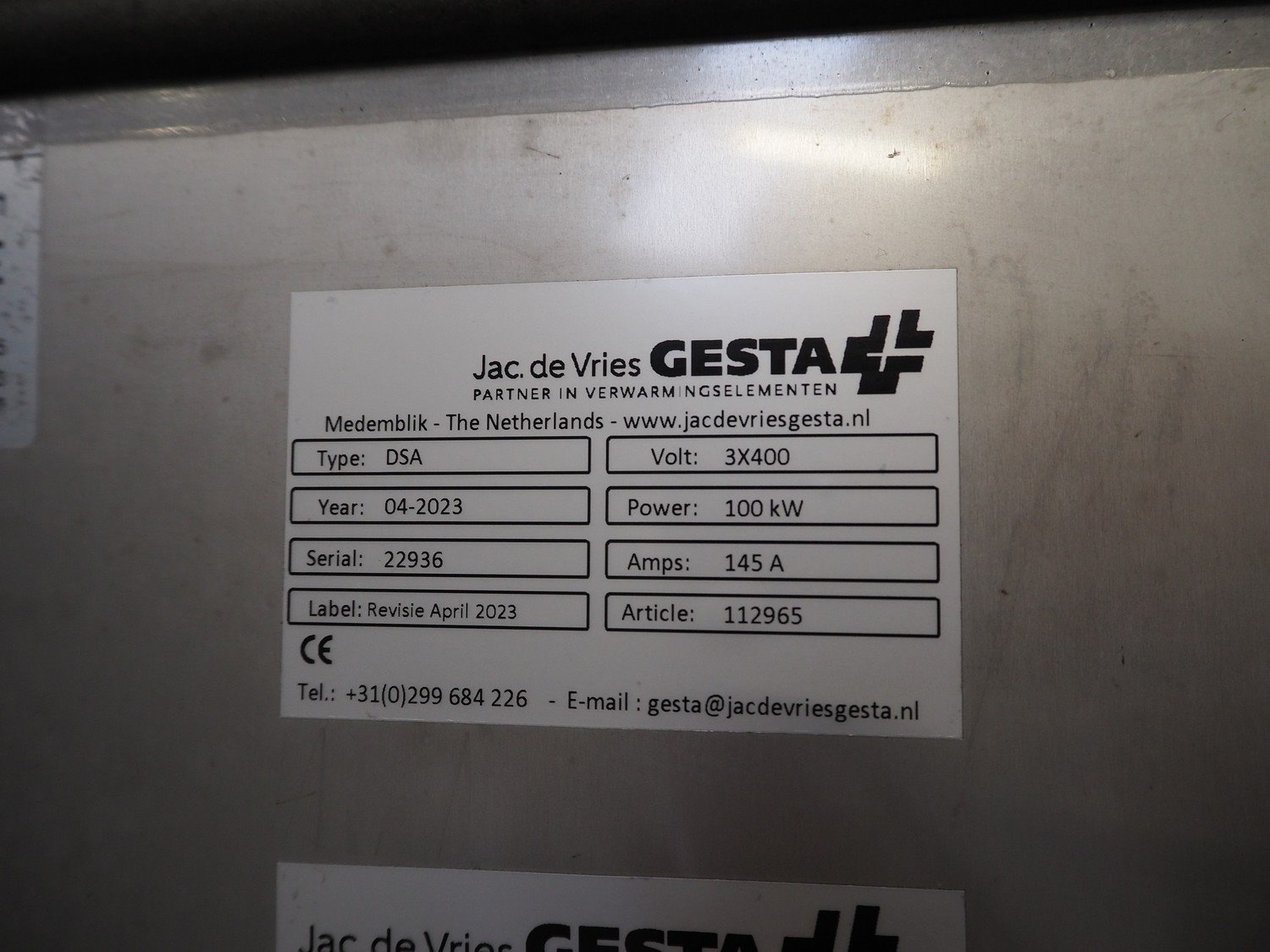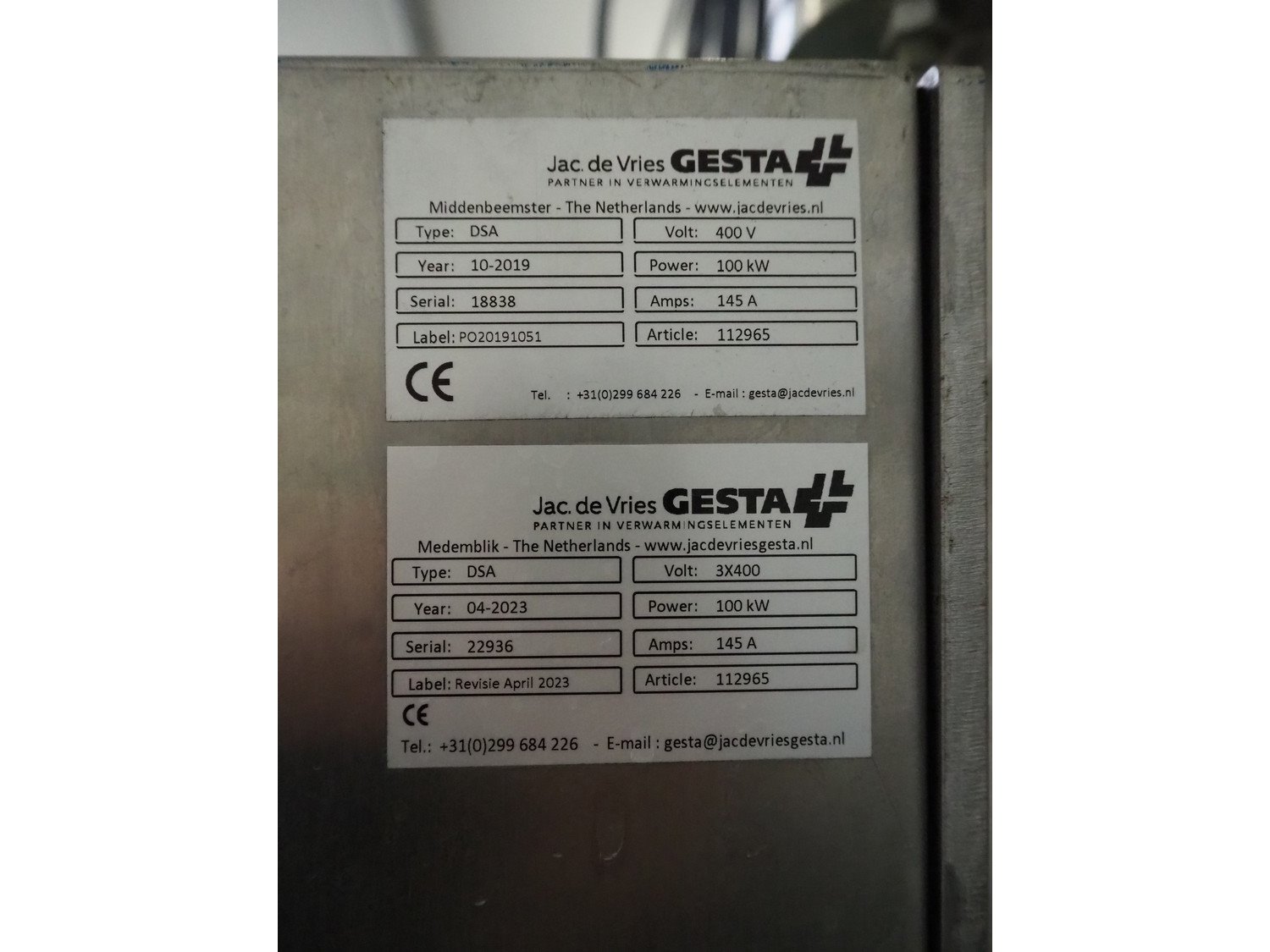 S/s skid with GESTA circulation heater, type: DSA, serial number: 18838, year of construction: 10-2019, 400 V, 145 A, 100 kW, including Krohne flowmeter and 5 Pentair valves, total dimensions: 1600 mm x 900 mm x 2950 mm. Kavel locatie: Drosteweg 6-8, 8108 NB Raalte, Nederland