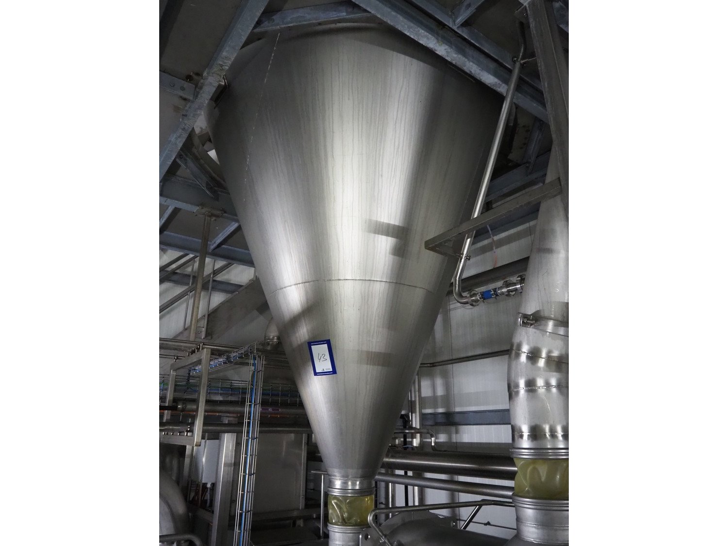 Dutch Process Technology spray drying installation, consisting of: spray dryer, bag filter, drying bed, Reitz blowers, Cotes dehumidifier, model: C65, serial number: 19.14655, Pomac centrifugal pump, DTP switch cabinet, s/s platforms and steel construction, total dimensions: 9600 mm x 5000 mm x 11500 mm. Voor meer informatie klik op de volgende links: Channel_diameters_dryer.pdf 18P09_PID_ABC_Kroos_REV10.pdf 018017-250r26_PID_Voorlooptank.pdf Kavel locatie: Drosteweg 6-8, 8108 NB Raalte, Nederland