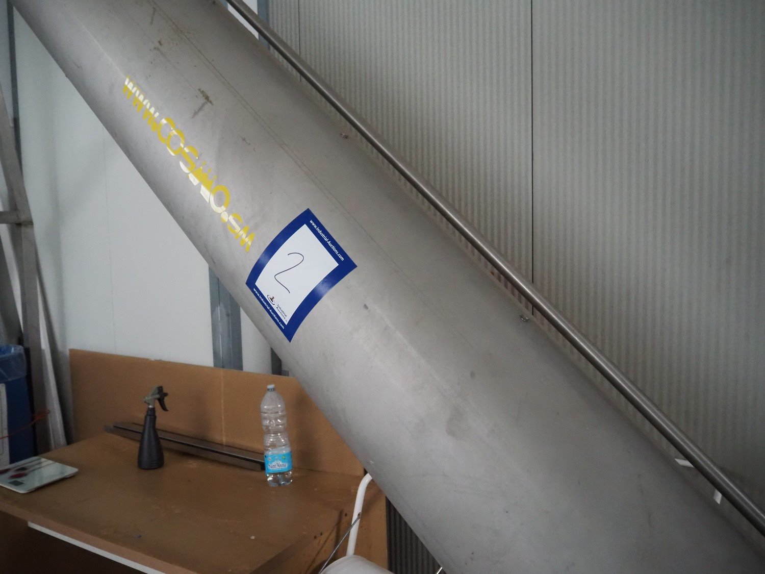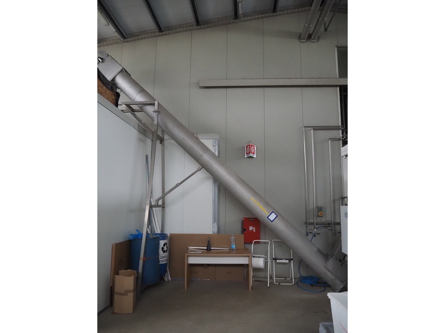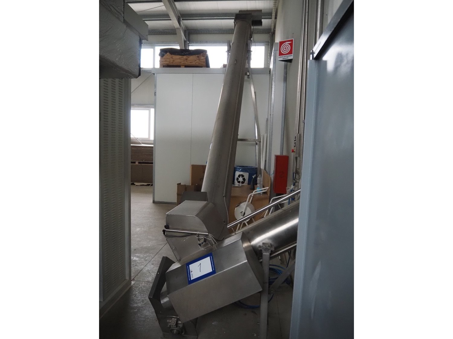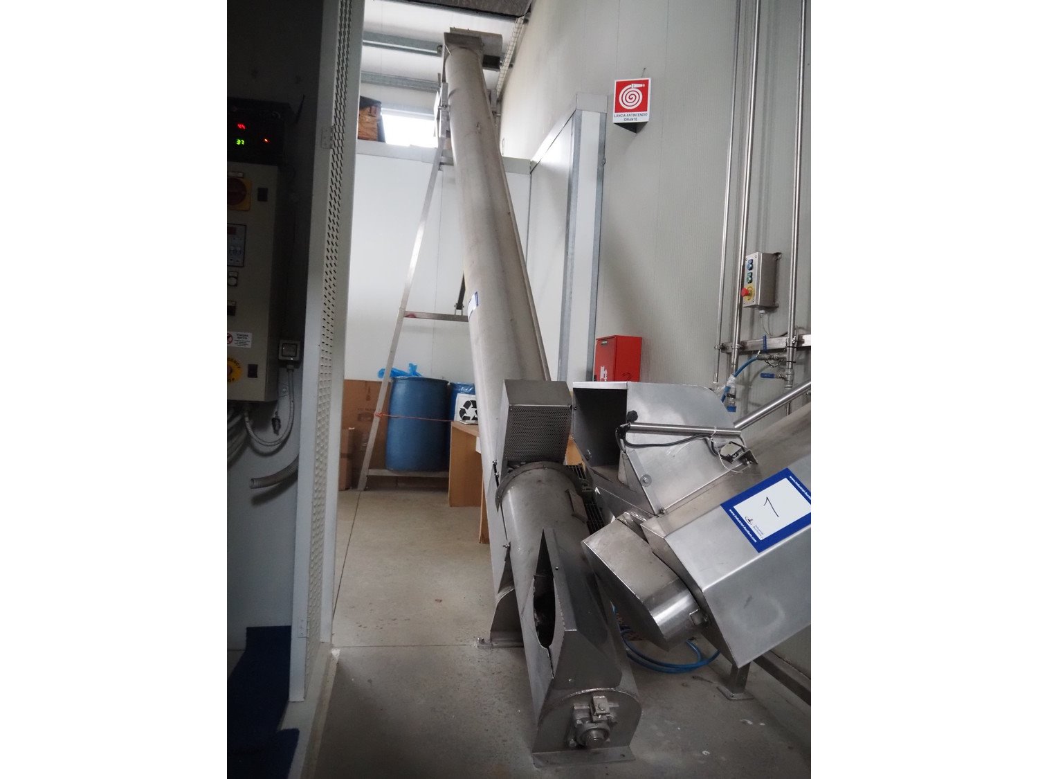 Cosmo Food Machinery s.r.l. elevating screw, type: CCL -TR 300/09, serial number: 3110-023-0115, year of construction: 2005, diameter screw: 290 mm, tier: 220 mm, elevating height: 4800 mm, total dimensions: 6000 mm x 1600 mm x 5000 mm. Kavel locatie: Via Pezze Lunghe di Sotto 11, 36026 Pojana Maggiore, Italië