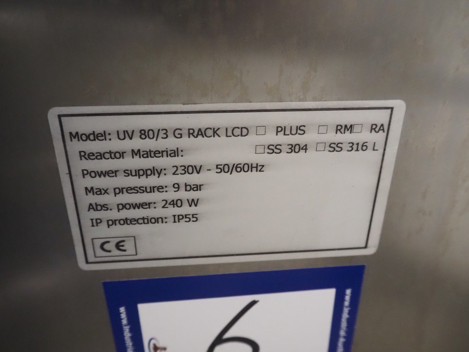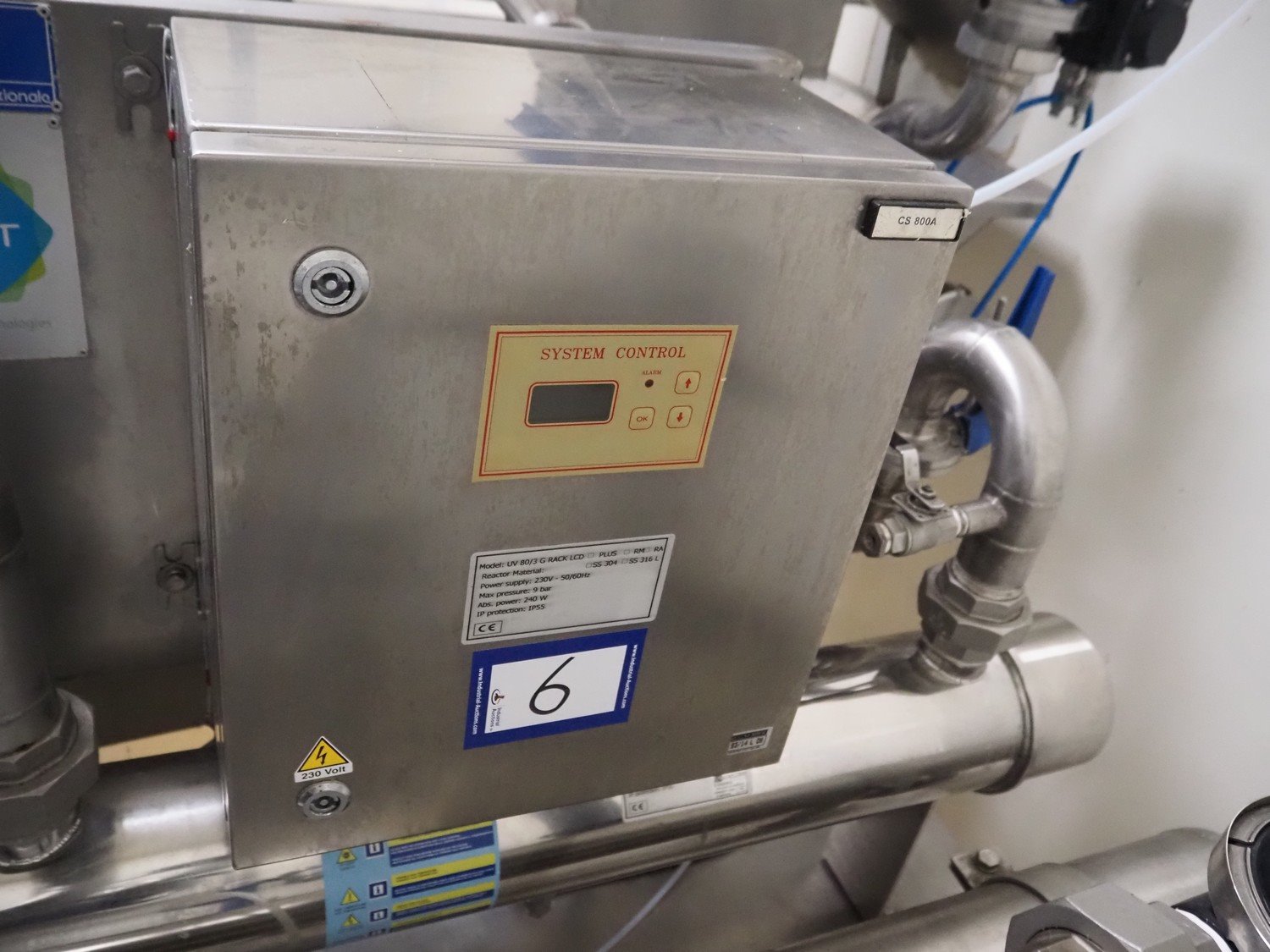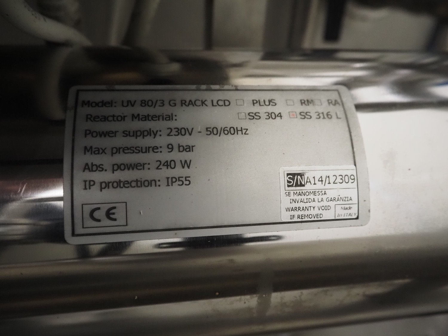 De Nora Next UV filter for water treatment, model: UV 80/3 G RACK LCD, 230 V, 50/60 Hz, 240 W, 9 bar, dimensions: 1600 mm x 650 mm x 1400 mm. Kavel locatie: Via Pezze Lunghe di Sotto 11, 36026 Pojana Maggiore, Italië